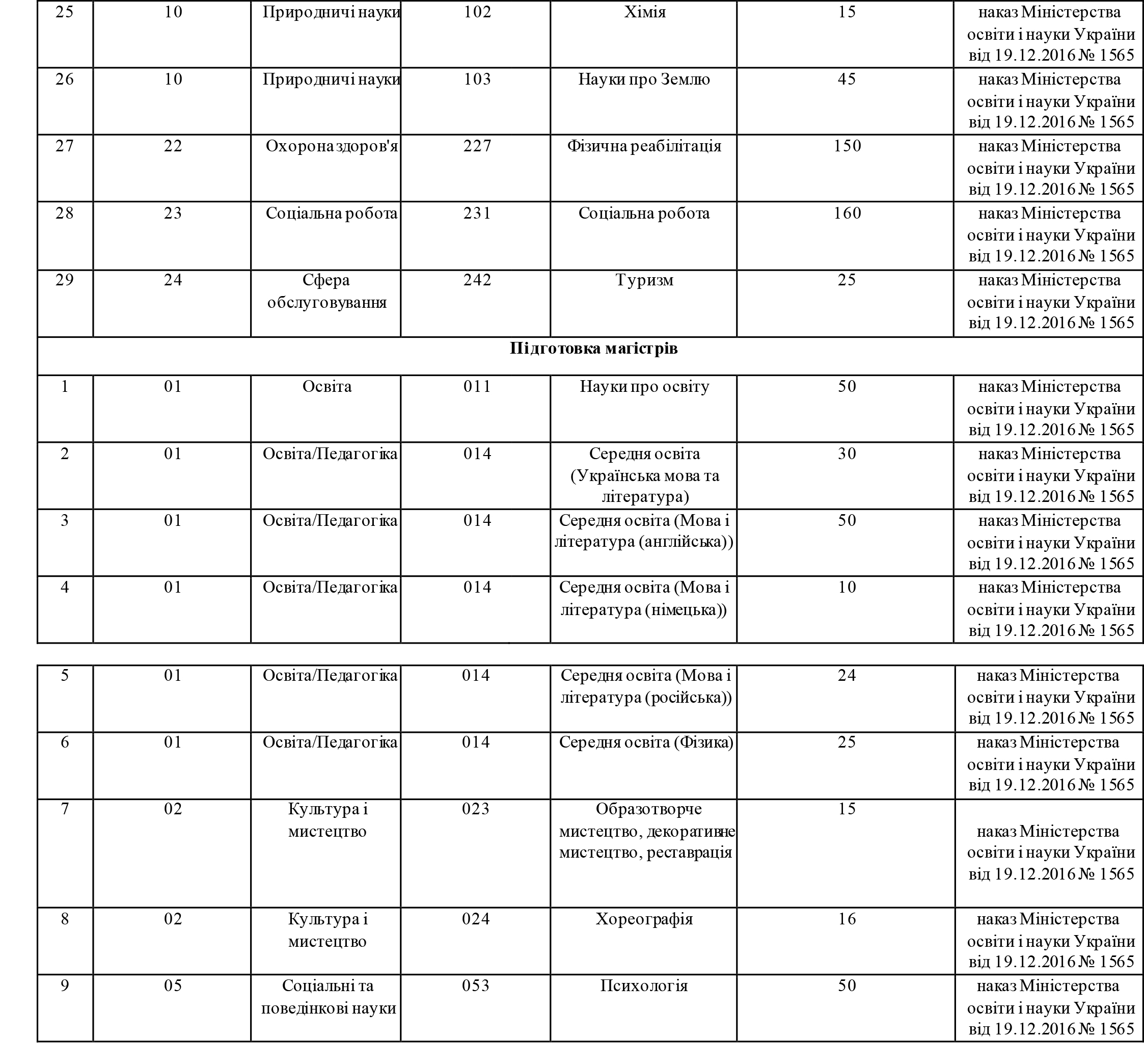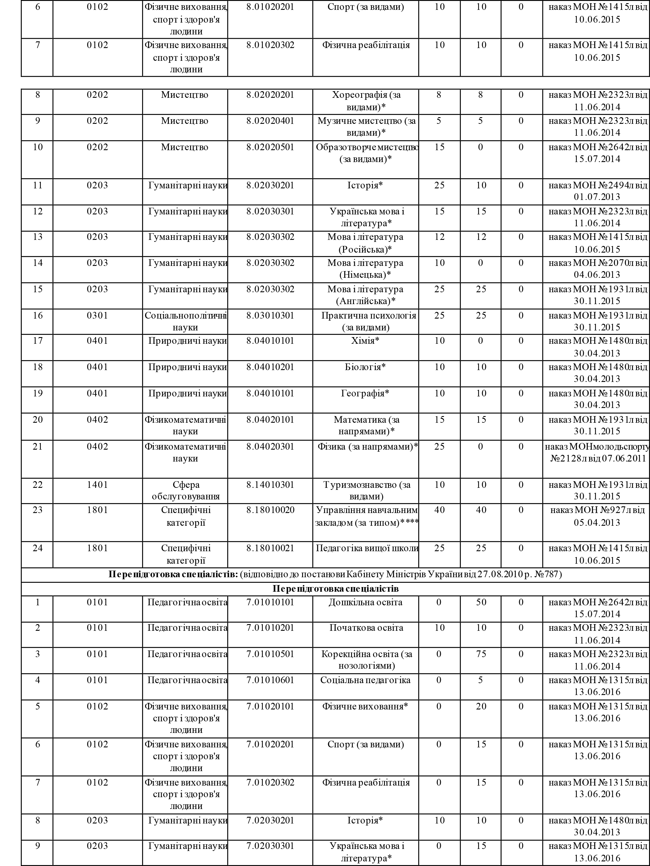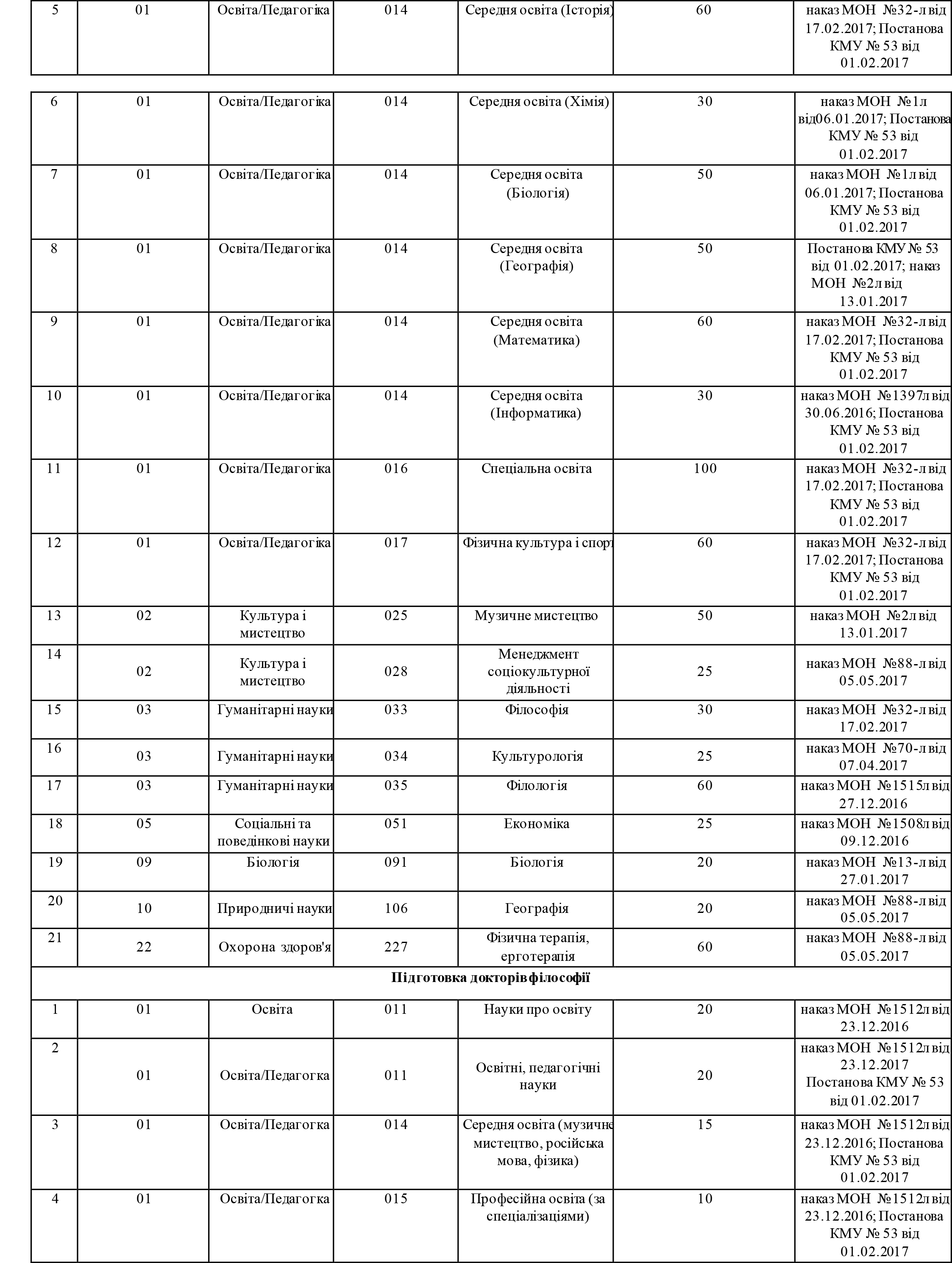 | (016) Спеціальна освіта | 100 | наказ МОН №32-л від 17.02.2017; Постанова КМУ № 53 від 01.02.2017 |