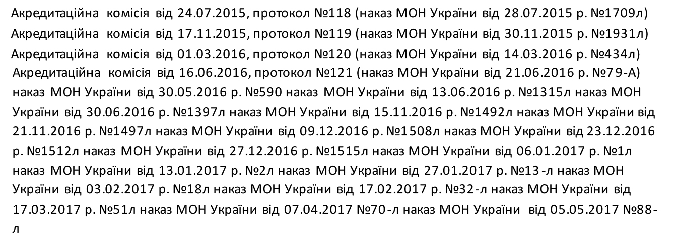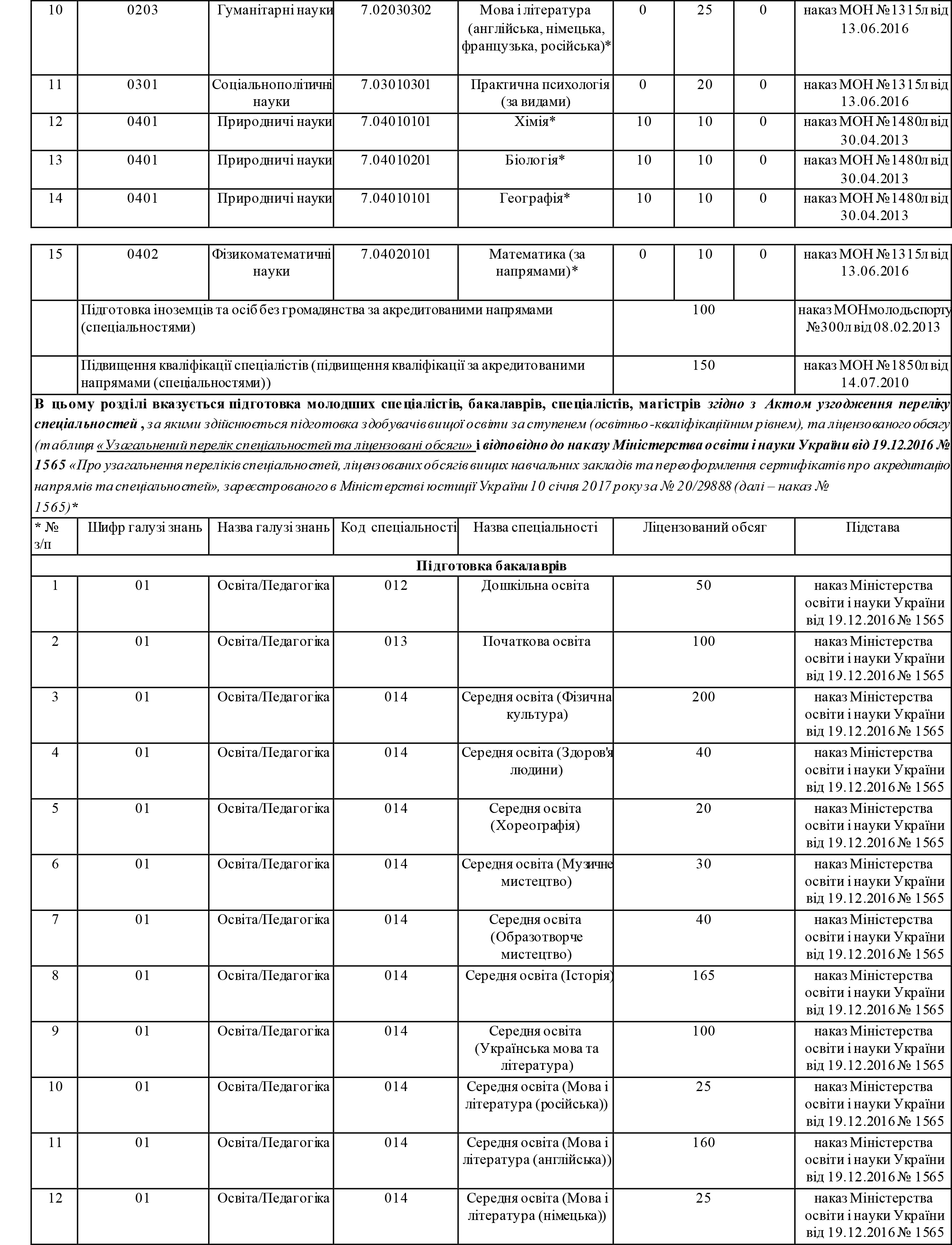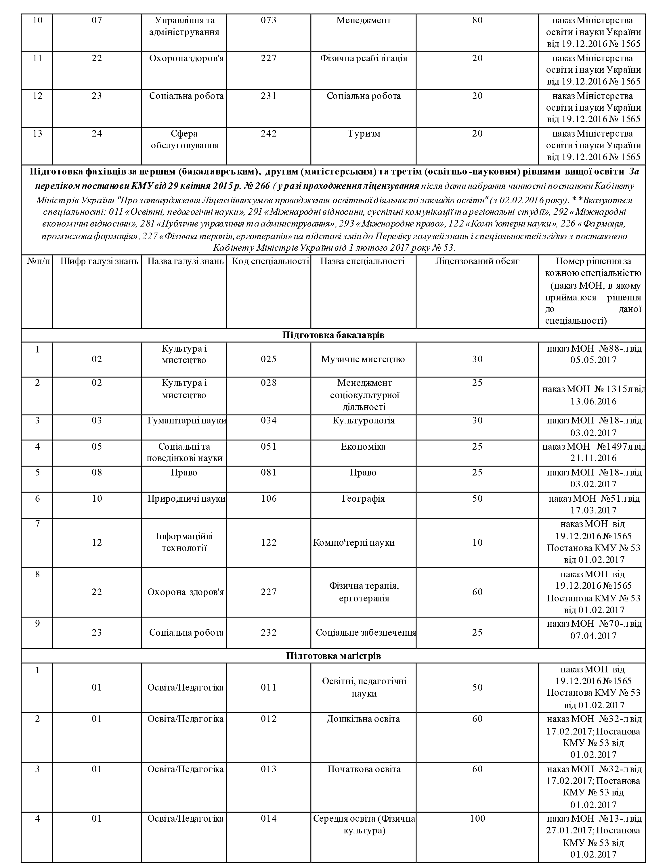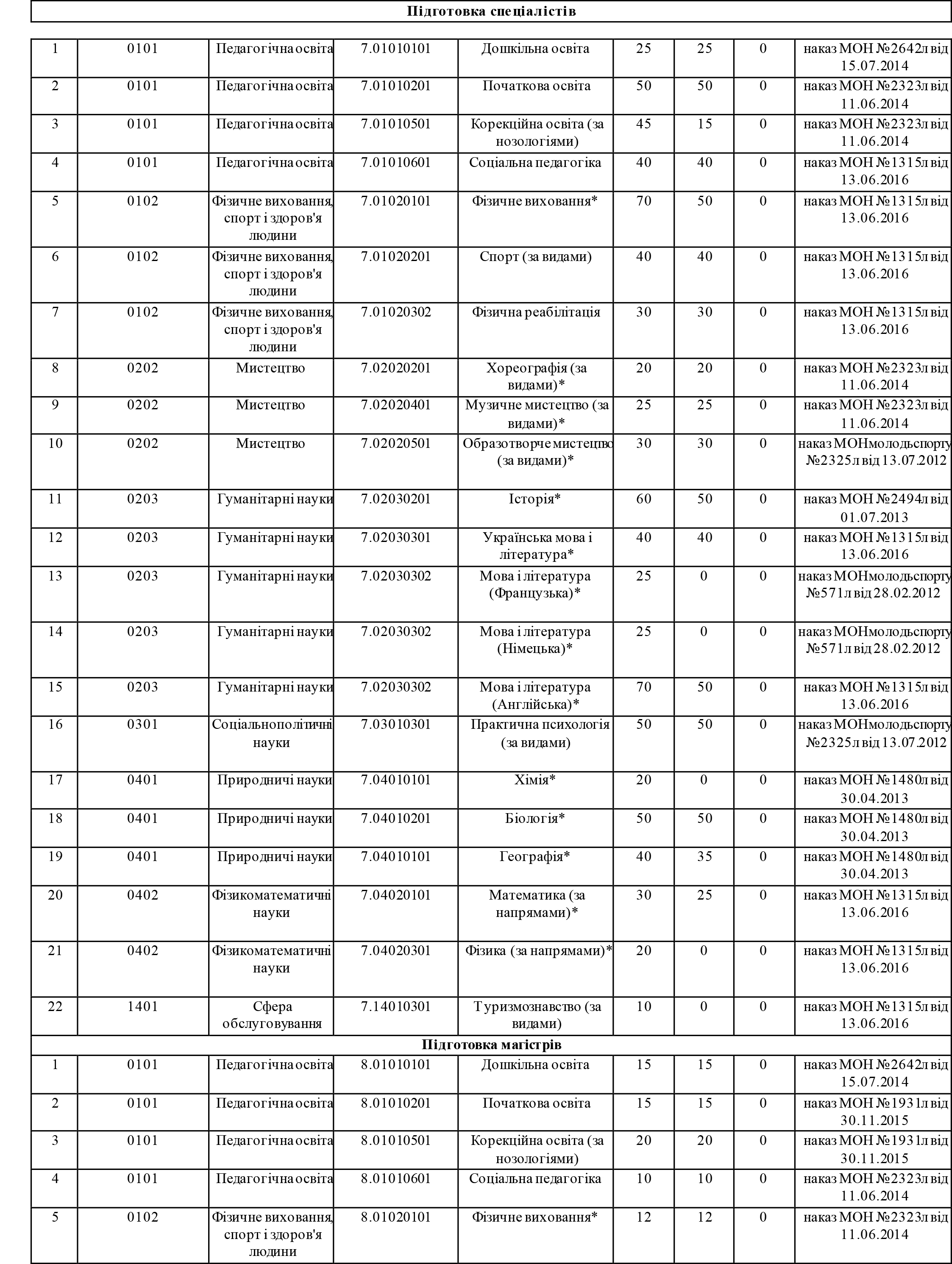 | (016) Спеціальна освіта | 100 | наказ МОН №32-л від 17.02.2017; Постанова КМУ № 53 від 01.02.2017 |