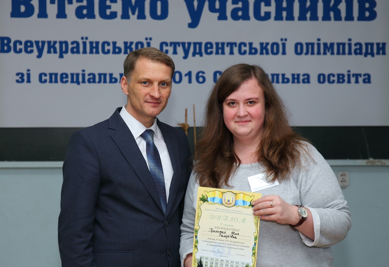 Дипломи Ректора Сумського державного педагогічного університету імені А.С. Макаренка отримали: диплом ІІ ступеня – Зелінська Катерина (Миколаївський національний університет імені В.О. Сухомлинського); диплом ІІІ ступеня – Дяченко Ганна (Полтавський національний університет імені В.Г. Короленка)
