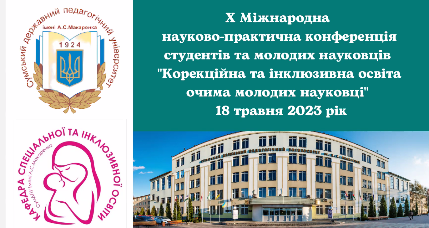 22 травня 2024 року на базі кафедри спеціальної та інклюзивної освіти Навчально-наукового інституту педагогіки і психології Сумського державного педагогічного університету імені А.С. Макаренка відбулася ХІ Міжнародна науково-практична конференція  студентів та молодих учених «Корекційна та інклюзивна освіта  очима молодих науковців», присвячена 100-річчю Сумського державного педагогічного університету імені А.С. Макаренка.