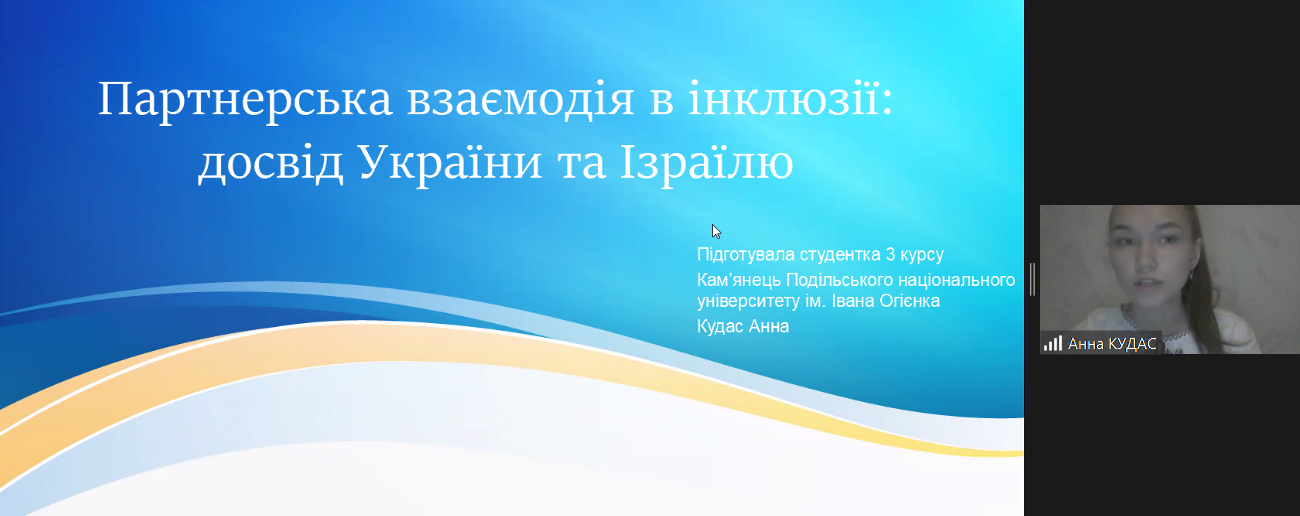 22 квітня 2021 року в межах другої зустрічі Міжнародної лабораторії інклюзивної освіти Modern Education & Research Institute  (Бельгія) відбулася презентація досвіду України щодо її досягнень та викликів в інклюзивному освітньому просторі на тему «Вторована дорога до інклюзії в освіті. Україна – історія успіху». Завідуючою лабораторії проблем інклюзивної освіти кафедри спеціальної та інклюзивної освіти СумДПУ імені А.С. Макаренка доктором педагогічних наук, професором Бондаренко Юлією Анатоліївною презентовано дві доповіді на тему «Генезис та розвиток інклюзивної освіти», «Шляхи сприяння закладами вищої освіти розвитку інклюзивної освіти в Україні/ на прикладі Сумського державного педагогічного університету імені А.С. Макаренка».