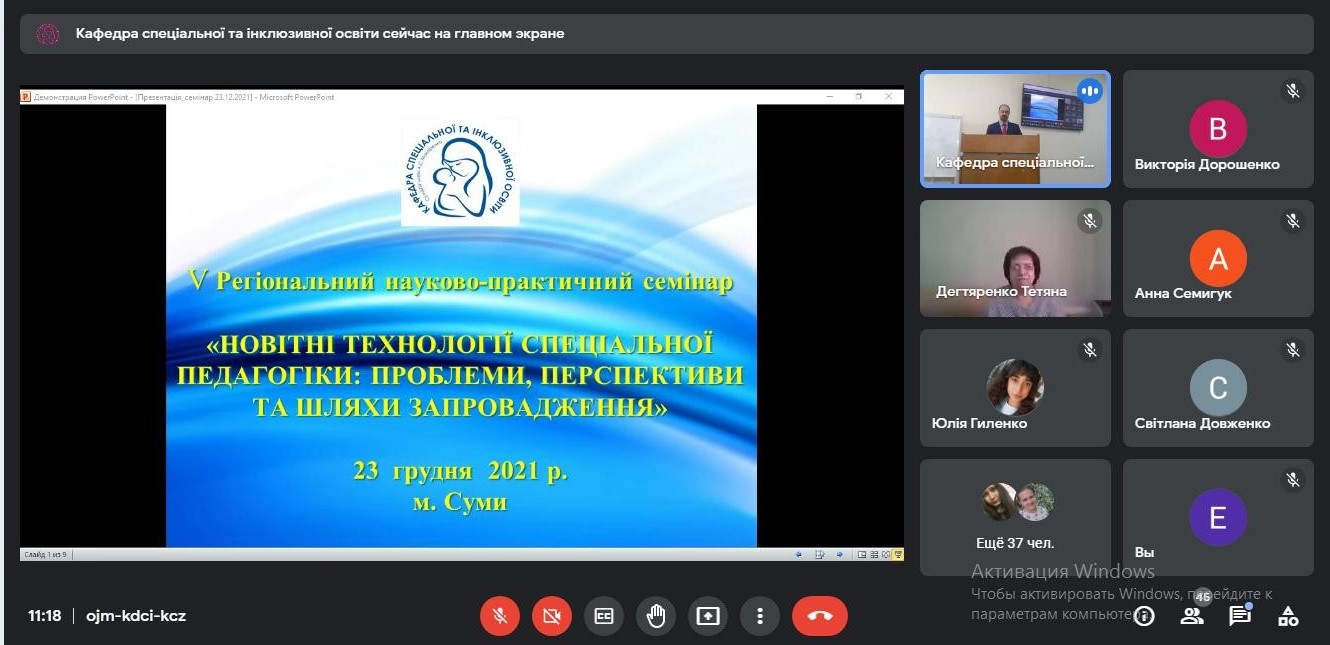 23 грудня 2021 року кафедрою спеціальної та інклюзивної освіти СумДПУ імені А.С. Макаренка було організовано та проведено V Регіональний науково-практичний семінар «Новітні технології спеціальної педагогіки: проблеми, перспективи та шляхи розвитку» (Координатор – канд. пед. наук Косенко Ю.М.).