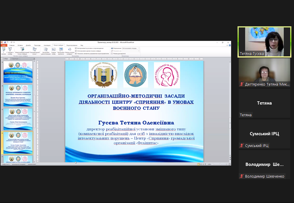 Під час зустрічі обговорено питання організації і проведення в умовах неформальної освіти практико-орієнтованого вебінару зі здобувачами освіти ІІ і ІІІ рівнів ВО спеціальності 016 Спеціальна освіта СумДПУ імені А.С. Макаренка,  низки семінарів для фахівців-практиків, які працюють з дітьми з особливими освітніми потребами в умовах інклюзивної та спеціальної освіти, соціально-реабілітаційних центрів, центрів розвитку дітей та батьків дітей з ООП.