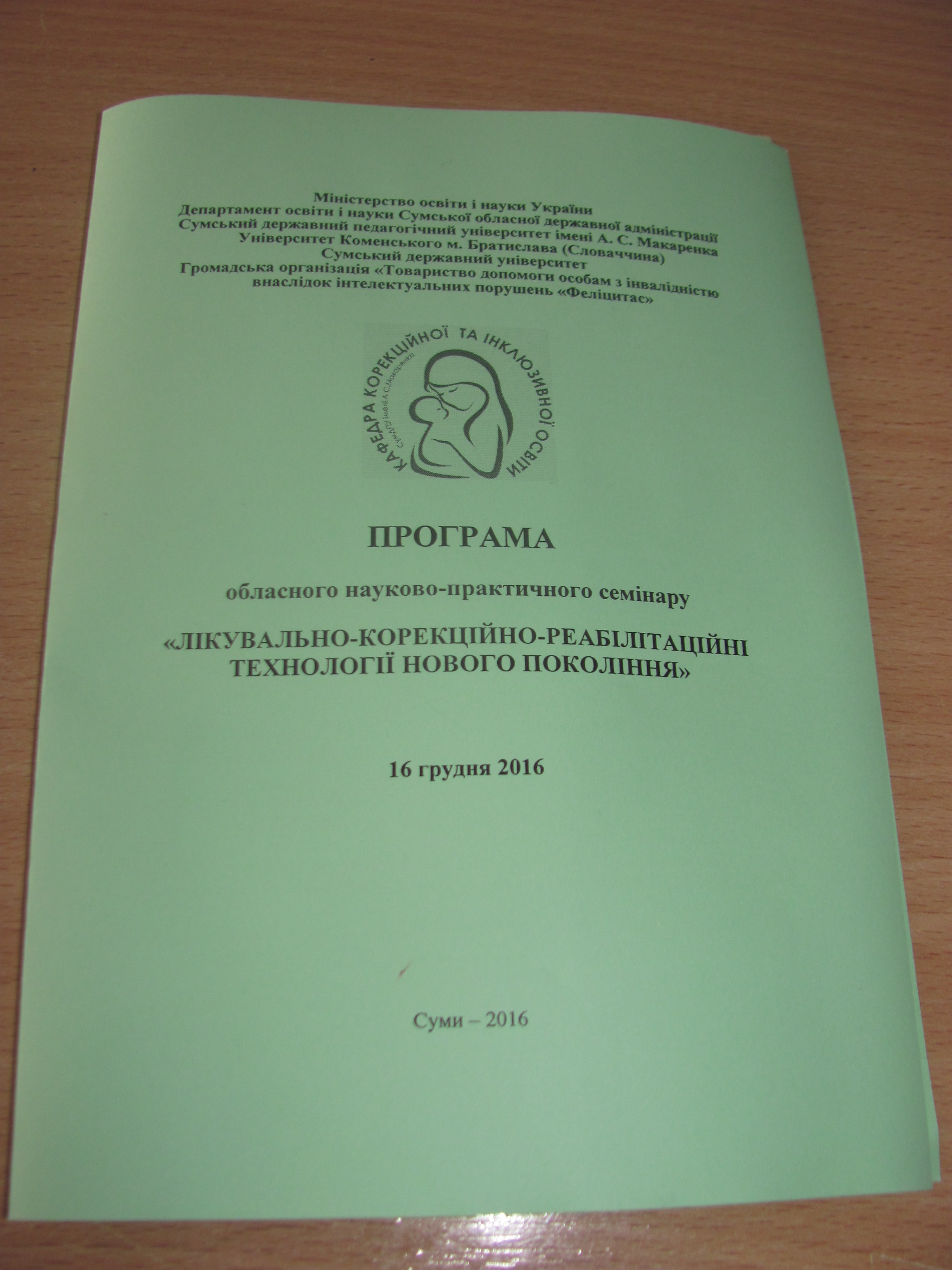 У грудні 2016 року – кафедрою організований і проведений обласний науково-практичний семінар „Лікувально-корекційно-реабілітаційні технології нового покоління” спільно з представниками Європейської нейро-психо-педагогічної лабораторії Університету імені Коменського (м. Братислава, Словаччина) за підтримки департаменту освіти і науки Сумської обласної державної адміністрації. Співорганізаторами семінару виступили Сумський державний університет, громадська організація „Товариство допомоги особам з інвалідністю внаслідок інтелектуальних порушень „Феліцитас”.