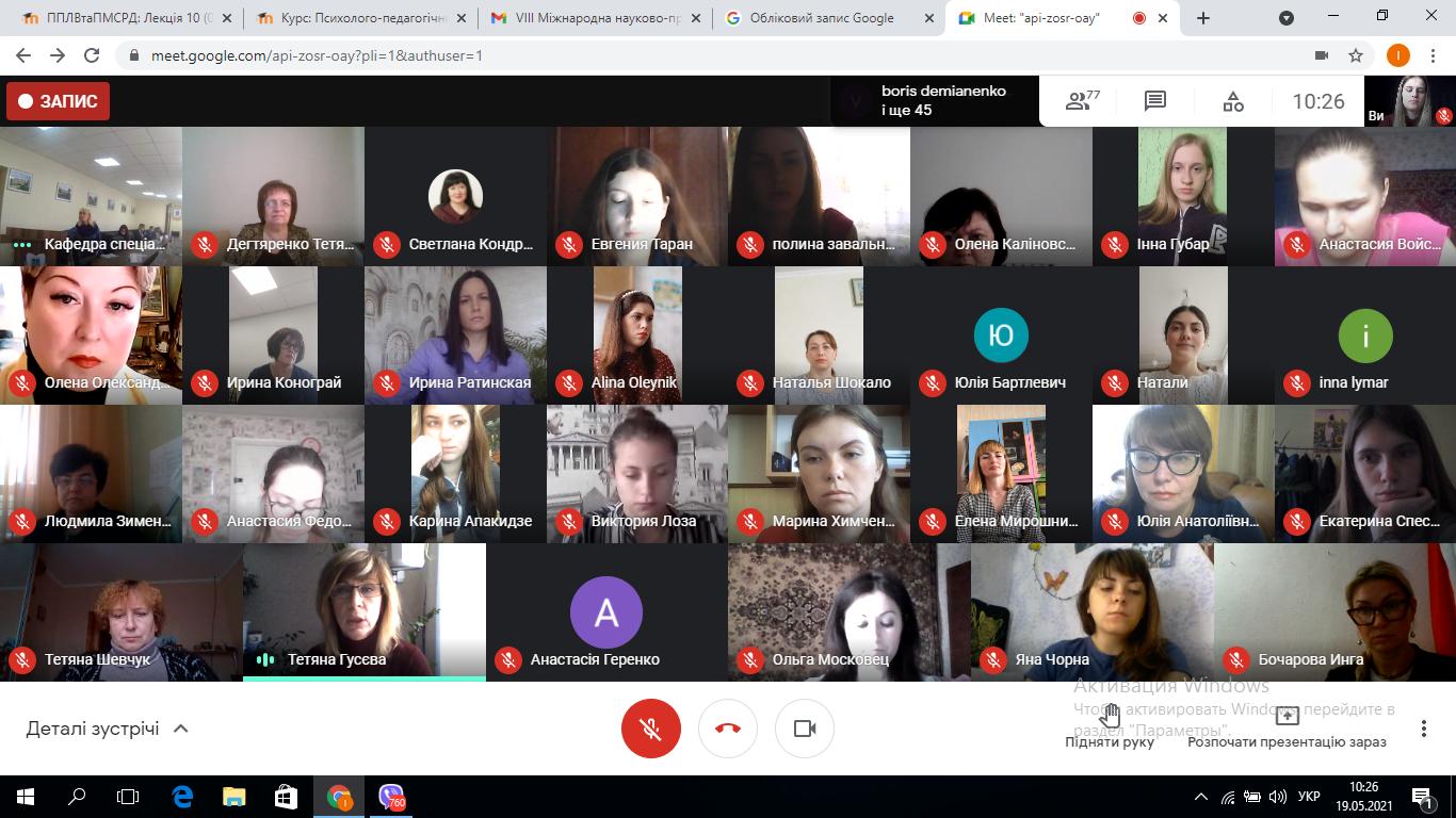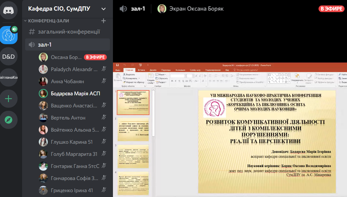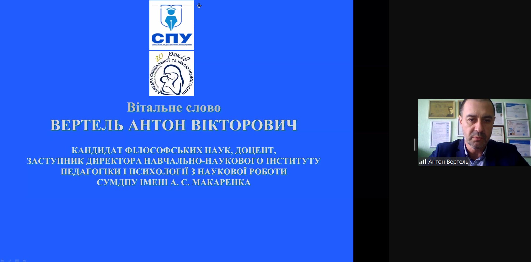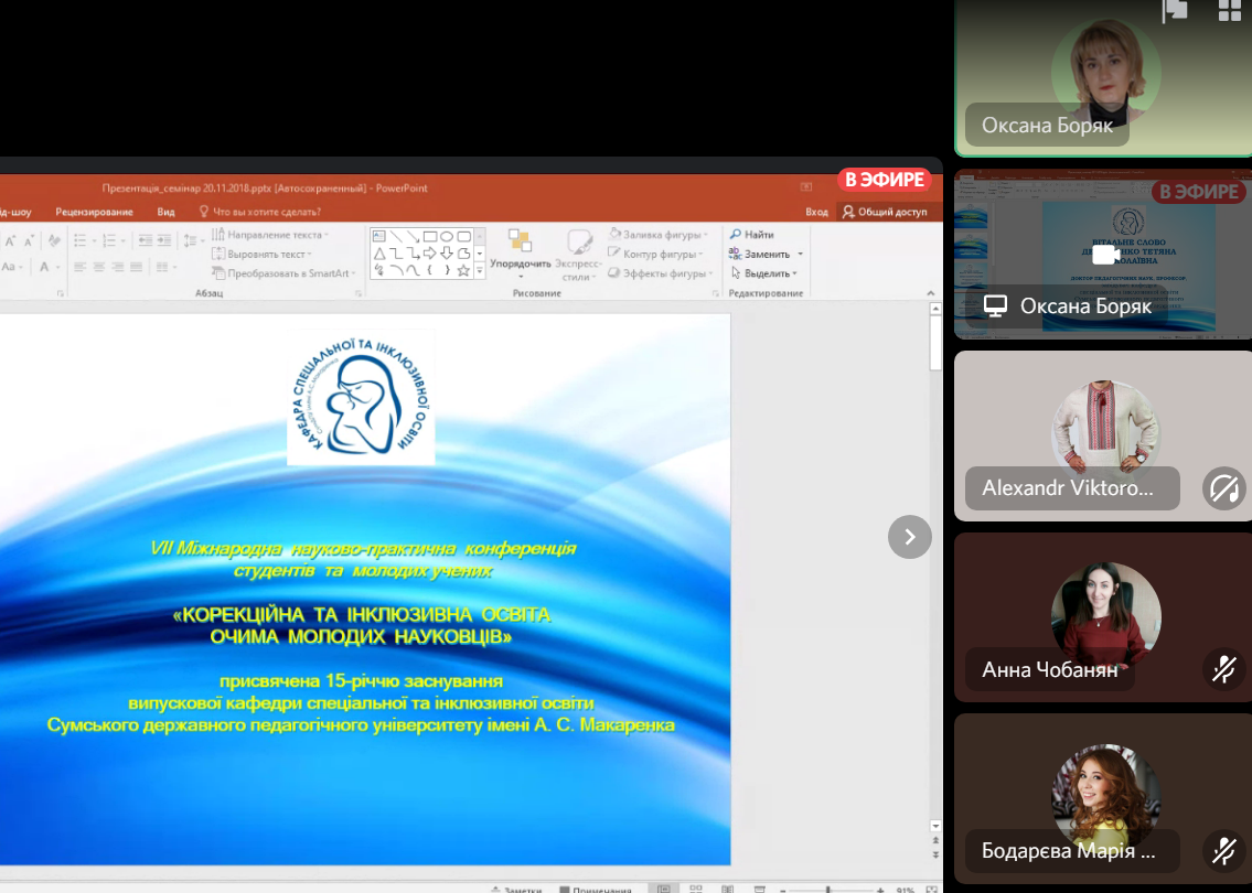 19 травня 2021 року на базі кафедри спеціальної та інклюзивної освіти Сумського державного педагогічного університету імені А.С. Макаренка відбулася в онлайн форматі VІІІ Міжнародна науково-практична конференція студентів та молодих учених «Корекційна та інклюзивна освіта очима молодих науковців» (Координатор – д-р пед. наук, професор Боряк О.В.).