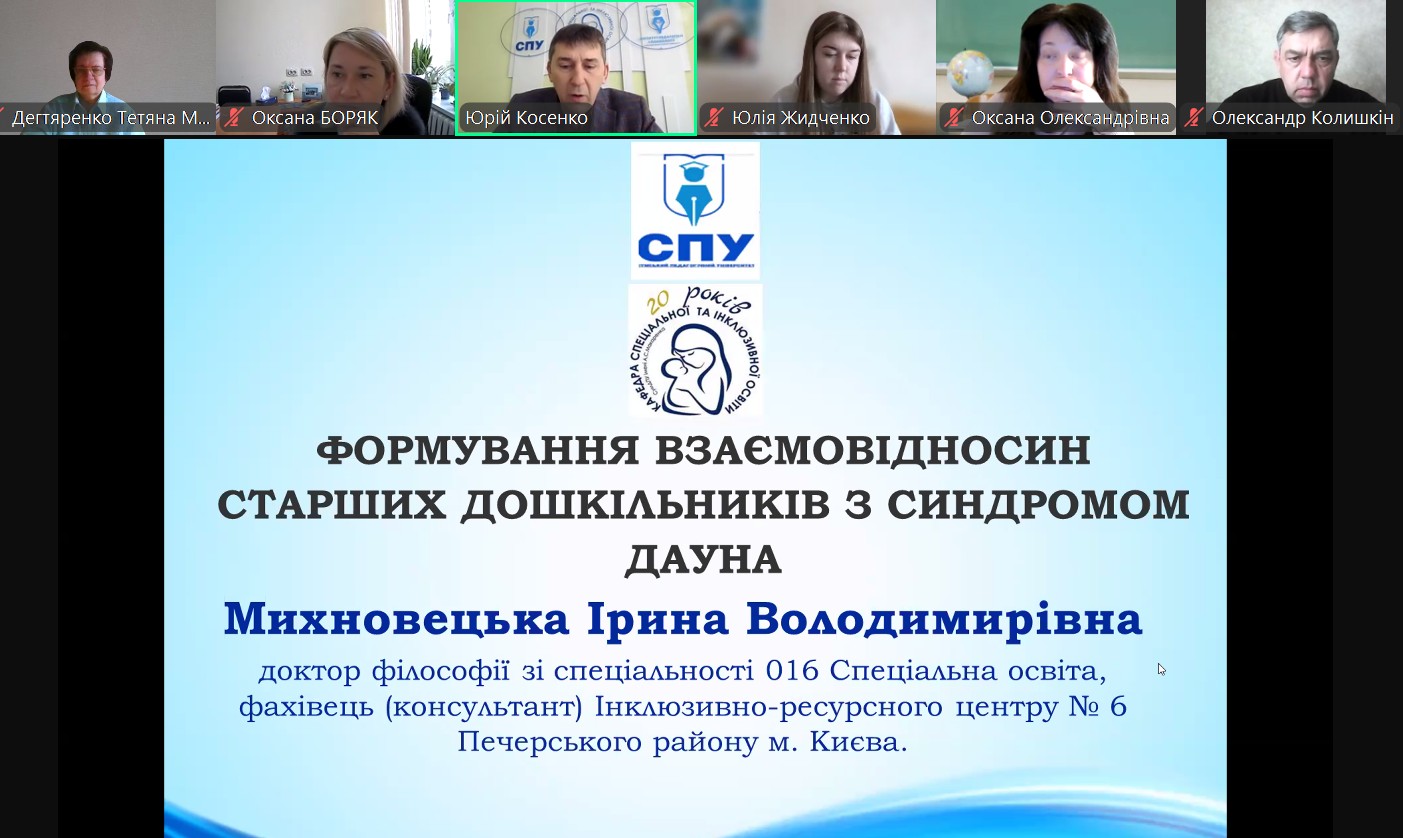 18 червня 2021 року кафедрою спеціальної та інклюзивної освіти було проведено ІV Регіональний науково-практичний семінар зі спеціальної педагогіки «Новітні технології спеціальної педагогіки: проблеми, перспективи та шляхи запровадження» (Координатор – канд. пед. наук Косенко Ю.М.). На семінарі висвітлювалися актуальні питання навчання та виховання дітей з особливими освітніми потребами та шляхи їх подолання, розглядалися сучасні методики корекційного супроводу дітей з розладами аутистичного спектру. Присутнім було повідомлено про специфіку організації позаурочної діяльності дітей з порушеннями інтелектуального розвитку та застосування арт-технологій в навчально-виховному процесі спеціальних закладів середньої освіти.