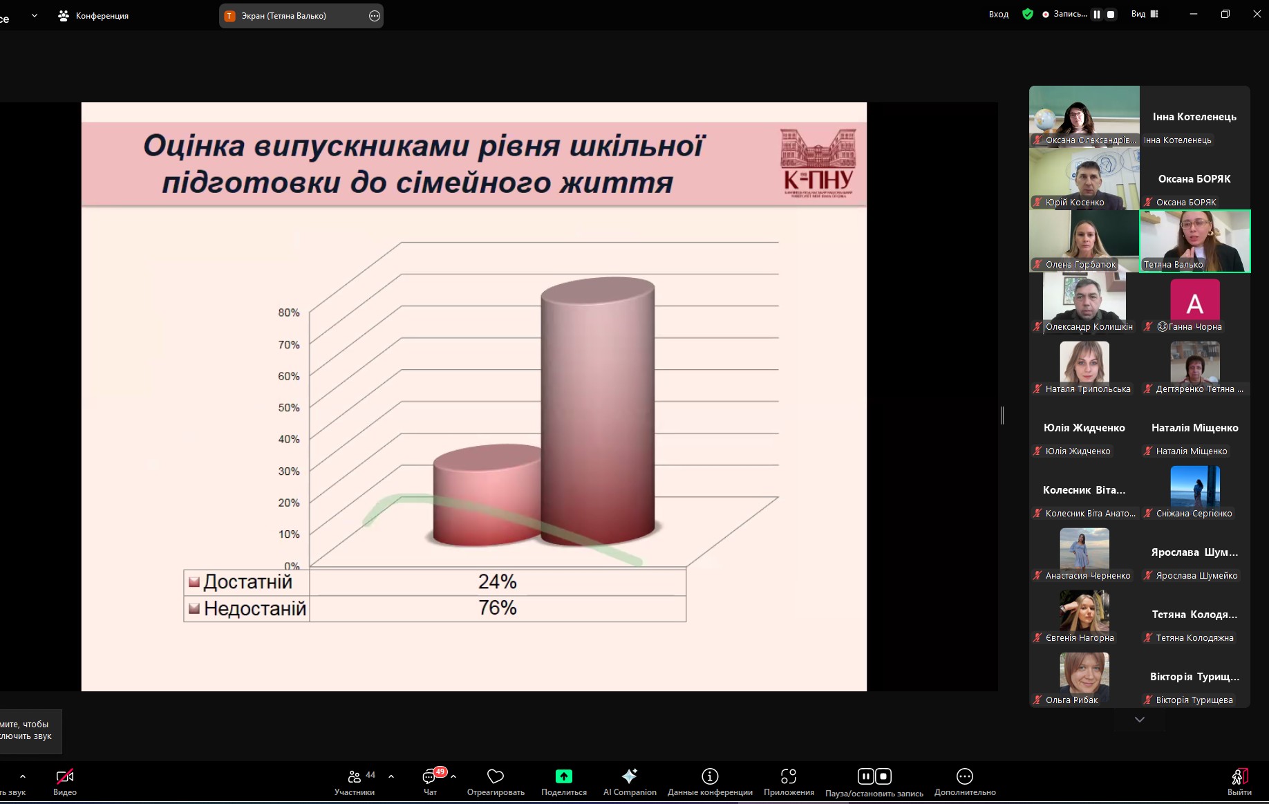 Заступником директора з наукової роботи ННІПіП канд. філос. наук, доц. кафедри психології Вертелем Антоном Вікторовичем було презентовано здобутки студентського наукового товариства в НН ІПП. Під час обговорення докт. пед. наук, проф. Дегтяренко Тетяною Миколаївною  внесено пропозиції щодо покращення ефективності діяльності молодих науковців, систематичної перевірки матеріалів дисертації на плагіат.