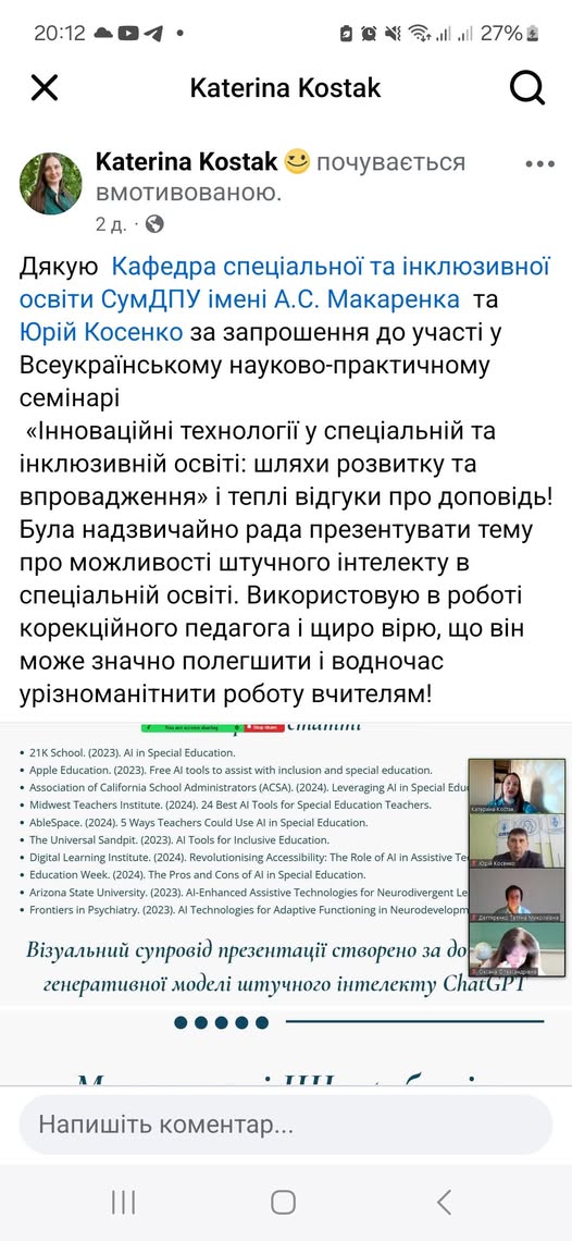відео Всеукраїнський науково-практичний семінар «Інноваційні технології у спеціальній та інклюзивній освіті: шляхи розвитку та впровадження» 05.03.2024