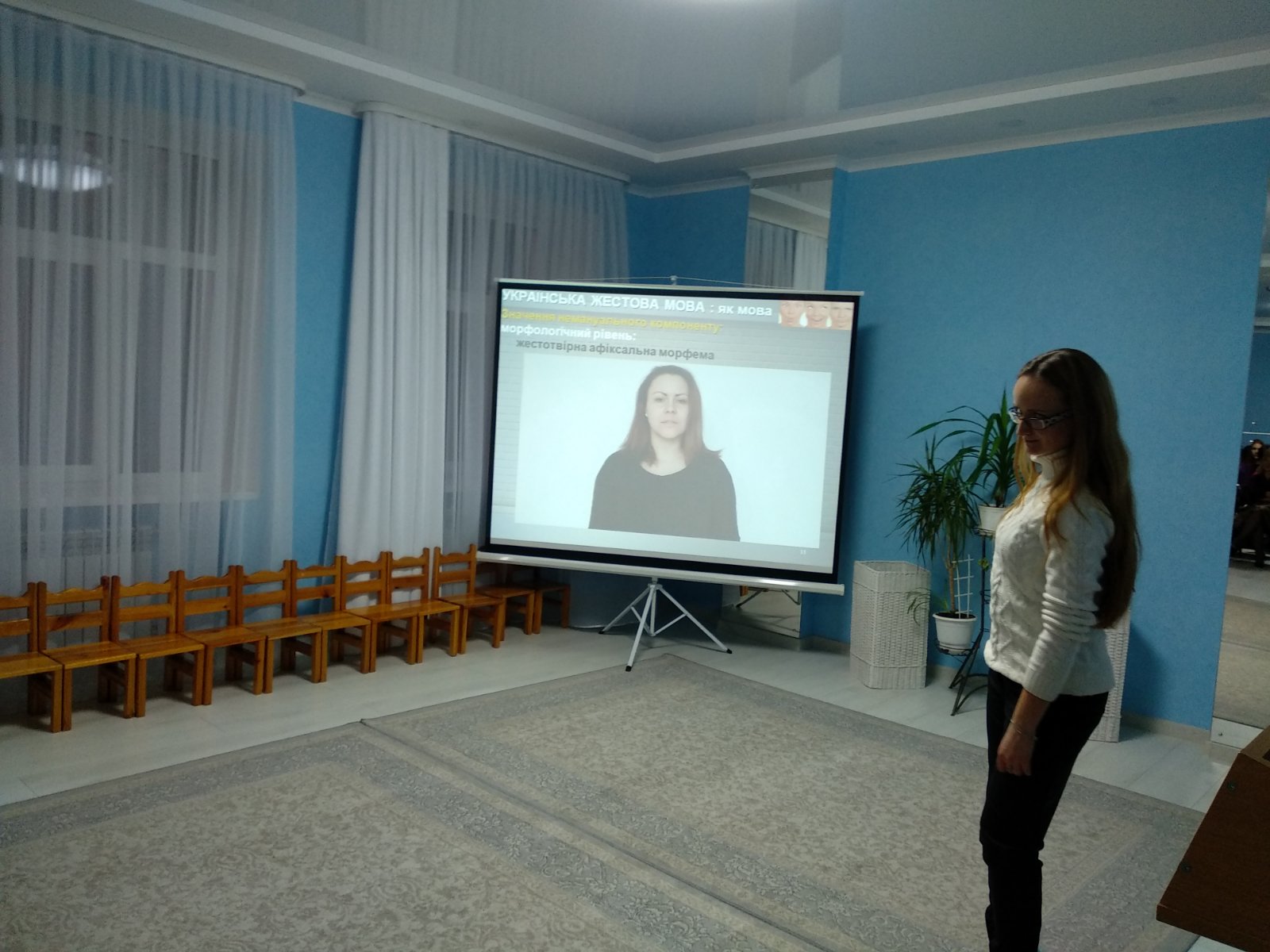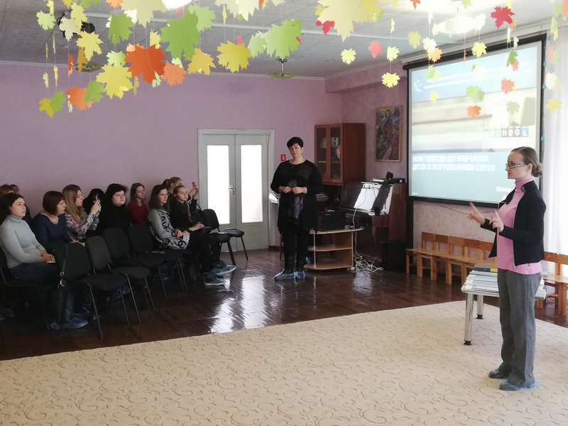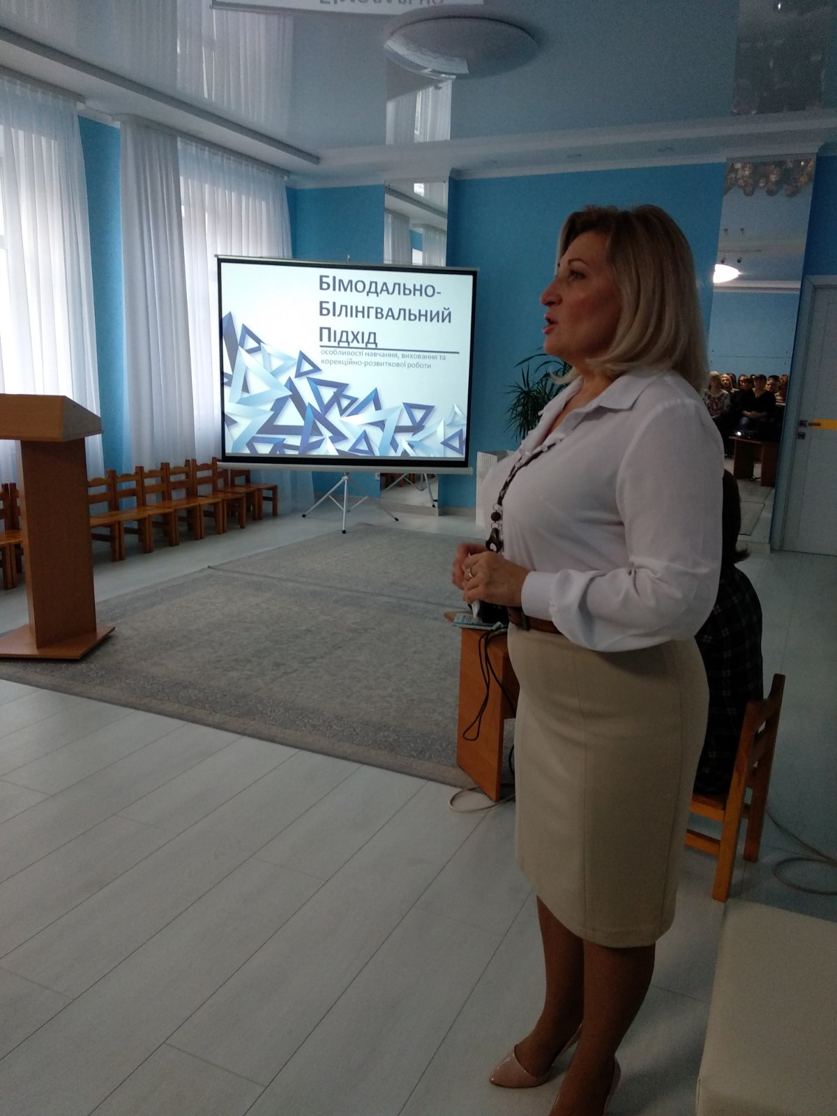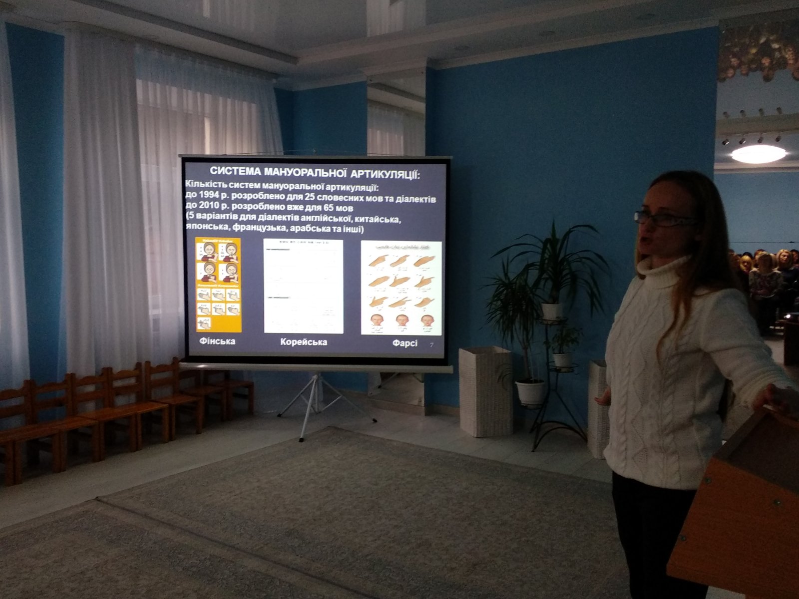 Специфіку роботи дефектологів та вихователів закладу висвітлила завідувач дошкільного закладу Супрун Вікторія Володимирівна. Цікавими й змістовними були виступи завідувача відділу жестової мови Замші Анни Володимирівни та старшого наукового співробітника цього відділу Дробот Олени Анатоліївни, присвячені модерновій вітчизняній дактилології, системі мануоральної артикуляції, бімодально-білінгвальному підходу в навчанні глухих дітей тощо.