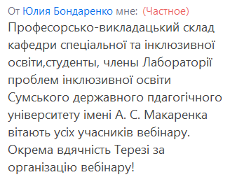 20 вересня 2021 року відбулася зустріч, організована Лабораторією проблем інклюзивної освіти СумДПУ імені А. С. Макаренка (керівник проф. Ю.А. Бондаренко) з доктором філософських наук, спеціалістом в галузі нейропсихології, біхевіористом, автором методичних розробок щодо інноваційних підходів в роботі з людьми з РАС, синдром Дауна, порушеннями інтелектуального розвитку та поведінки Терезою Сіансіоло (Ірасбург, Вермонт, США).
