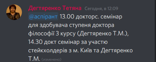До Докторського семінару, який проводився для аспірантів третього року навчання (Махоня Вадим Ігоревич), у якості стейкхолдерів активно долучилася аспіранти кафедри спеціальної та інклюзивної освіти Стайко Олена Сергіївна, Бодарєва Марія Ігорівна (аспіранти другого курсу), Крикуненко Юлія Олександрівна, Паладич Олександр Вікторович (аспіранти першого курсу).