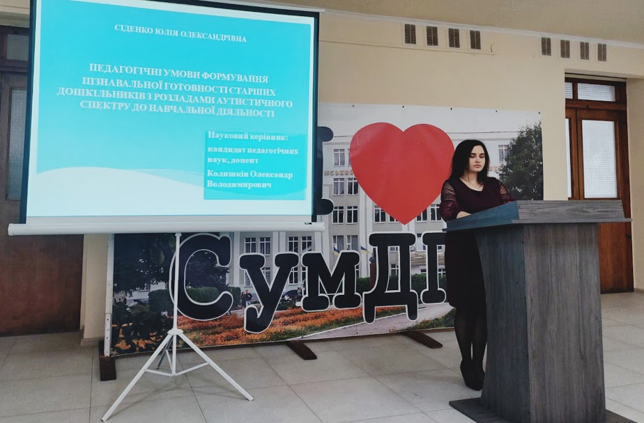9 жовтня 2020 року на базі кафедри спеціальної та інклюзивної освіти СумДПУ імені А.С. Макаренка відбувся фаховий семінар щодо попередньої експертизи дисертації аспірантки кафедри Сіденко Юлії Олександрівни на тему «Педагогічні умови формування пізнавальної готовності старших дошкільників з розладами аутистичного спектру до навчальної діяльності» на здобуття ступеня доктора філософії за спеціальністю 016 «Спеціальна освіта».