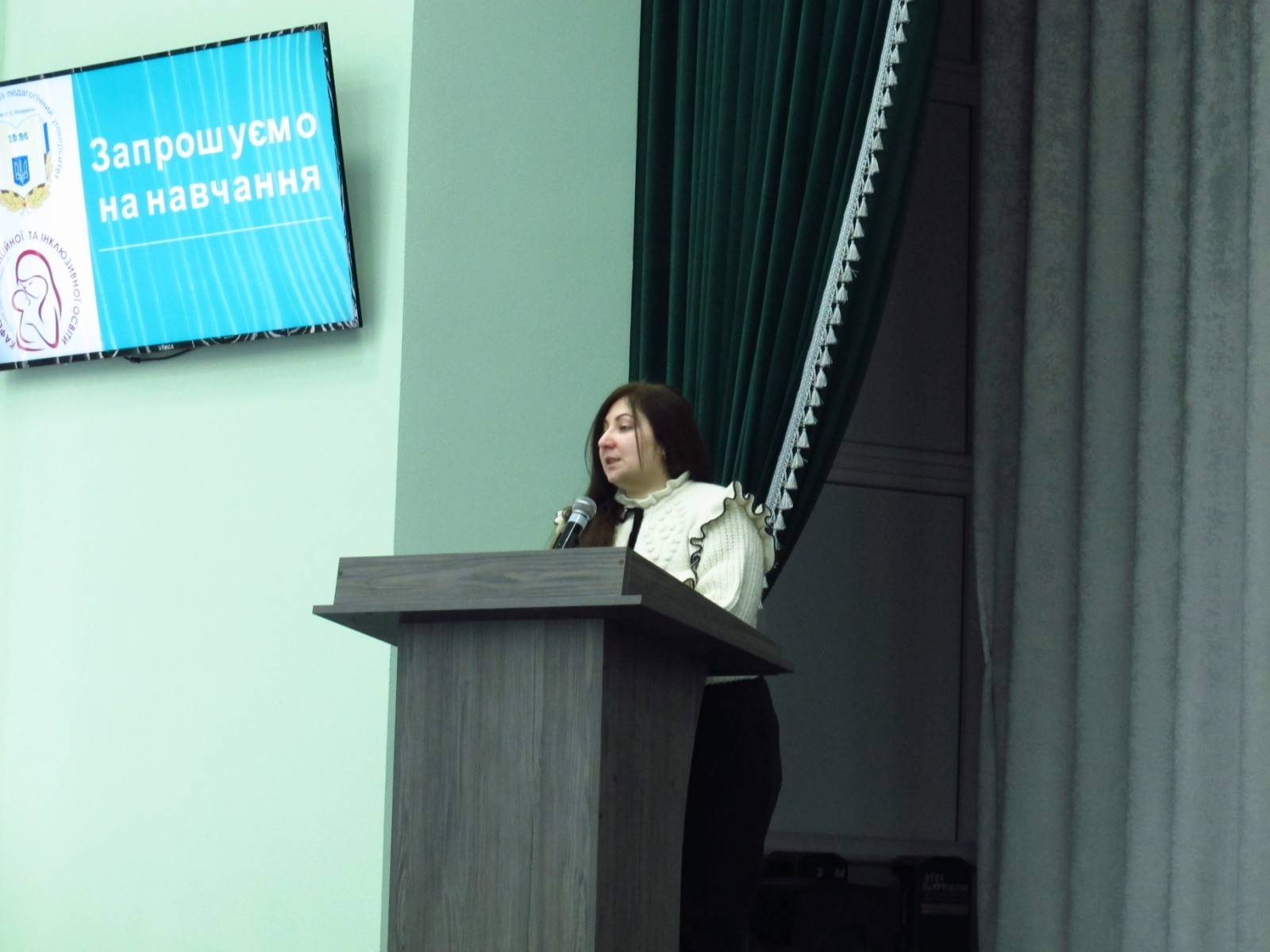 Анна Варужанівна Чобанян розповіла майбутнім абітурієнтам про переваги навчання за спеціальностю 016 Спеціальна освіта, про цьогорічні умови вступу, зазначила які потрібно мати сертифікати зовнішнього незалежного оцінювання. Особливо корисною була інформація про кваліфікації випускників кафедри за освітніми ступенями бакалавра/магістра й про можливості майбутнього працевлаштування. Під час виступу було надано інформацію про не тільки про навчання в університеті, а й про студентське дозвілля.