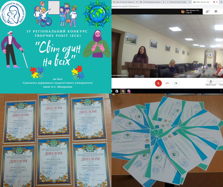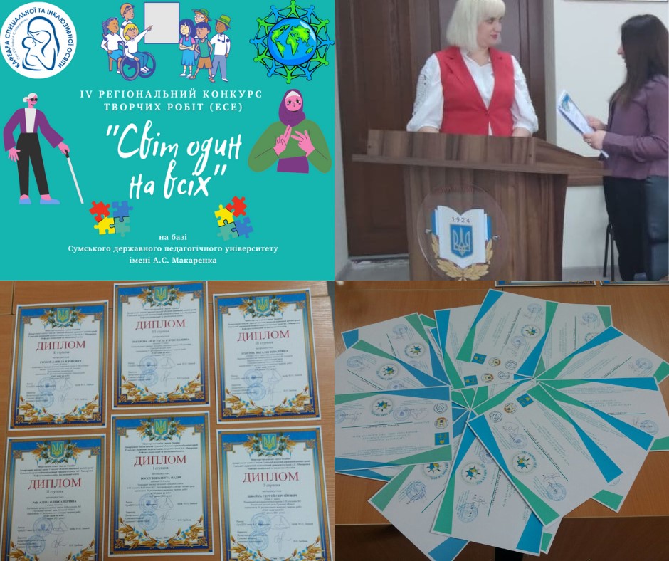 У березні-квітні 2021 року, кафедрою спеціальної та інклюзивної освіти Сумського державного педагогічного університету імені А.С. Макаренка за підтримки Департаменту освіти і науки Сумської ОДА, відбувся IV регіональний конкурс творчих робіт (есе) «Світ один на всіх».