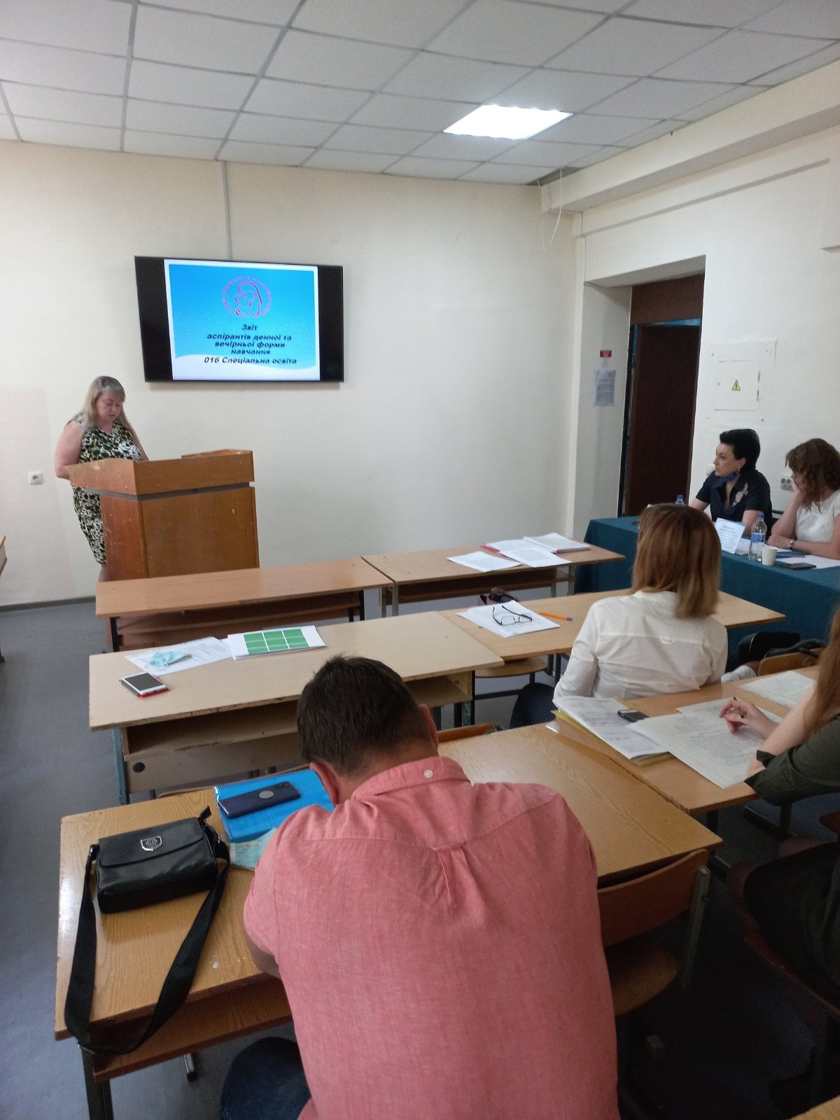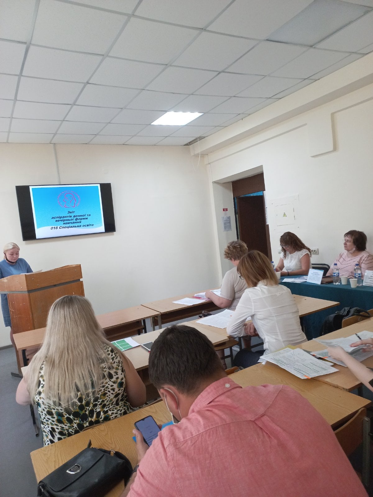 23 червня.2021 року на засіданні кафедри спеціальної та інклюзивної освіти відбулася звітна конференція аспірантів денної та вечірньої форм навчання спеціальності Спеціальна освіта. На засідання були присутні проректор з наукової роботи – д. економ. наук, проф. О.Ю. Кудріна та фахівець відділу аспірантури О.В.Єлецька.