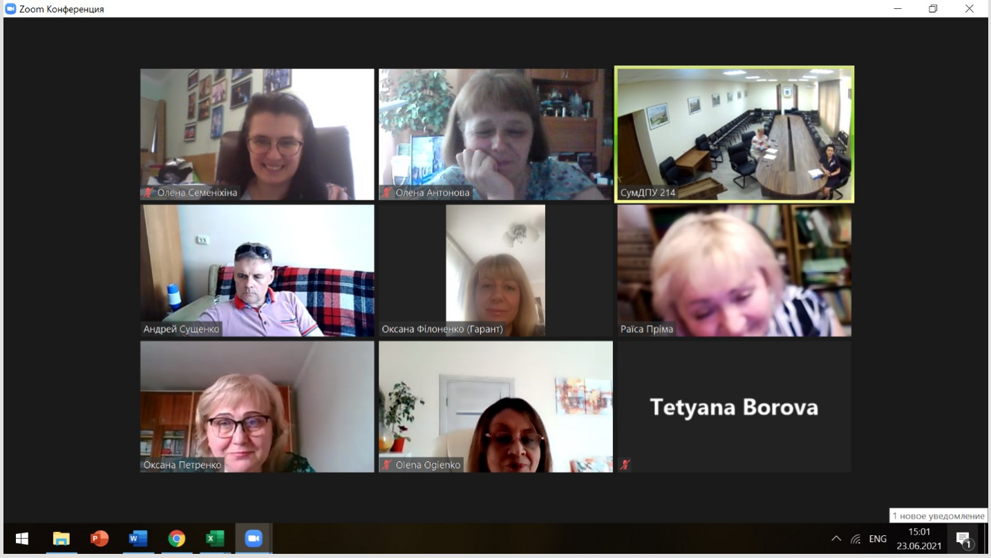 23 червня 2021 року гарантом освітньо-наукової програми підготовки здобувачів ступеня доктора філософії на третьому освітньо-науковому рівні вищої освіти за спеціальністю 016 «Спеціальна освіта» було взято участь у круглому столі «Шляхи розвитку освітньо-наукової програми 011 освітні, педагогічні науки», що організовано кафедрою педагогіки СумДПУ імені А.С. Макаренка.