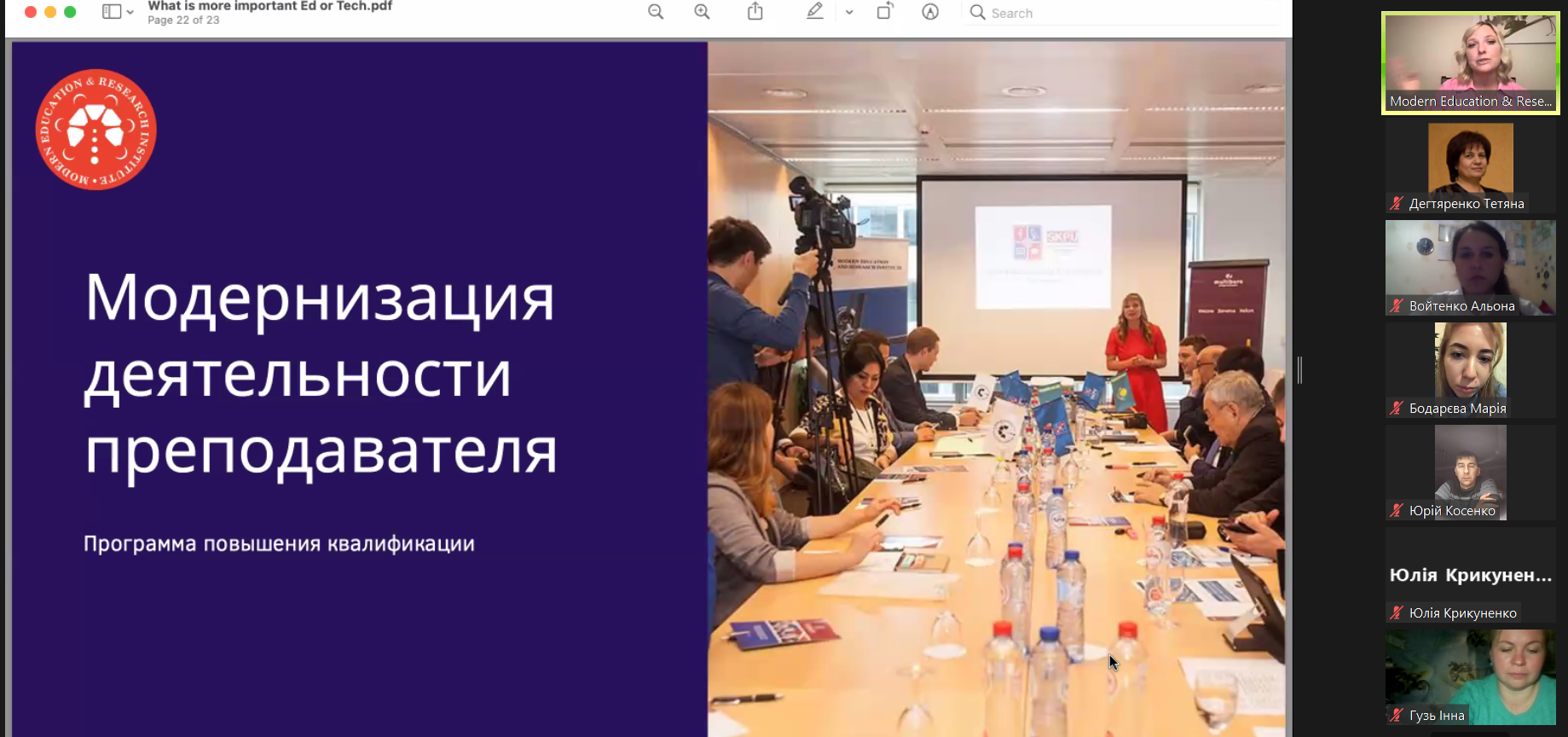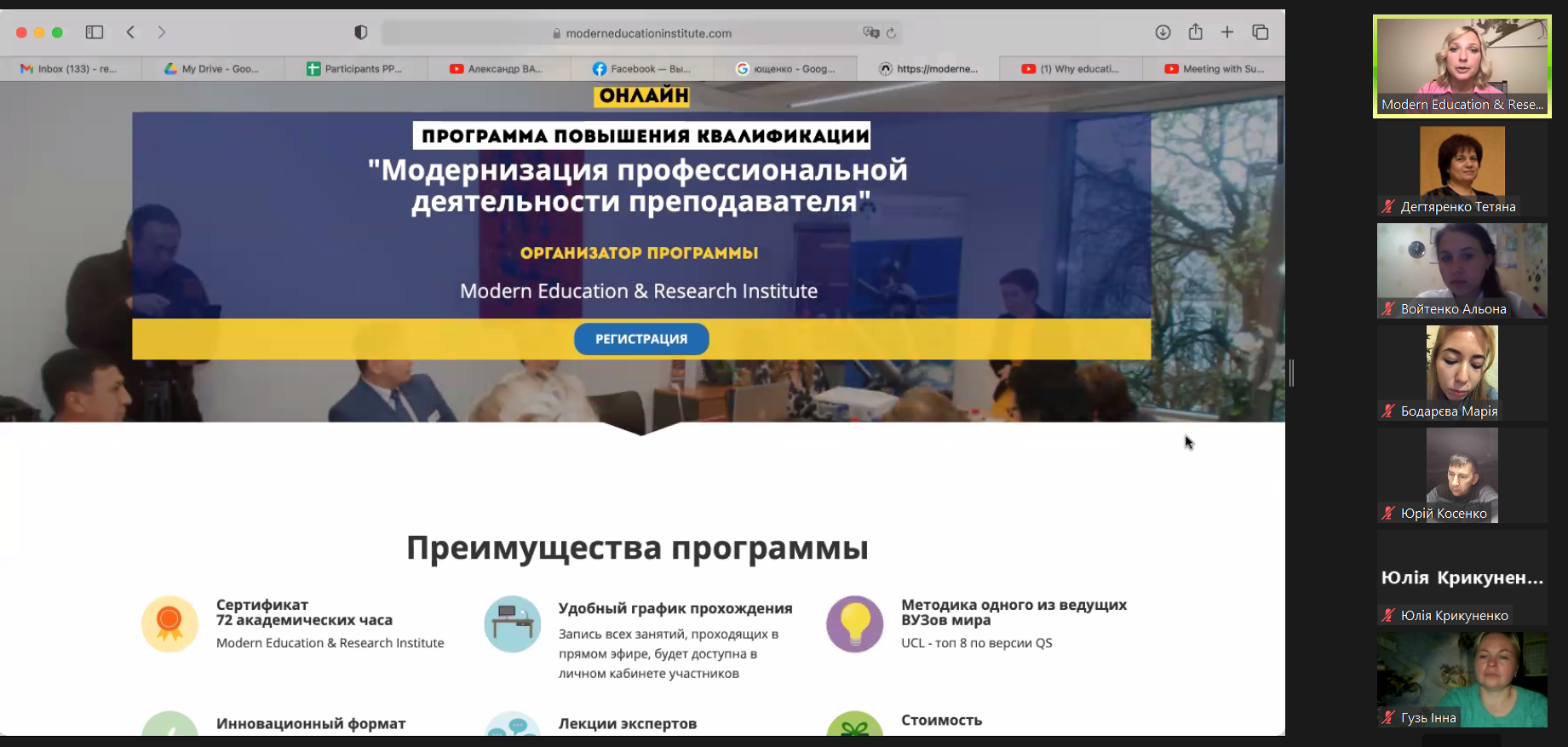 Також Катерина Царанок поінформувала присутніх про можливість підвищення кваліфікації за програмою «Модернізація діяльності викладача» в академічній спілці Modern Education & Research Institute (Брюссель, Бельгія).