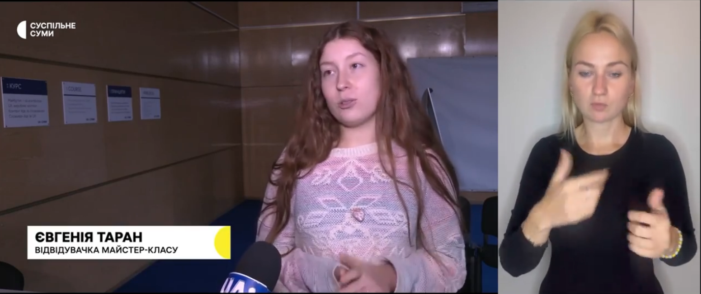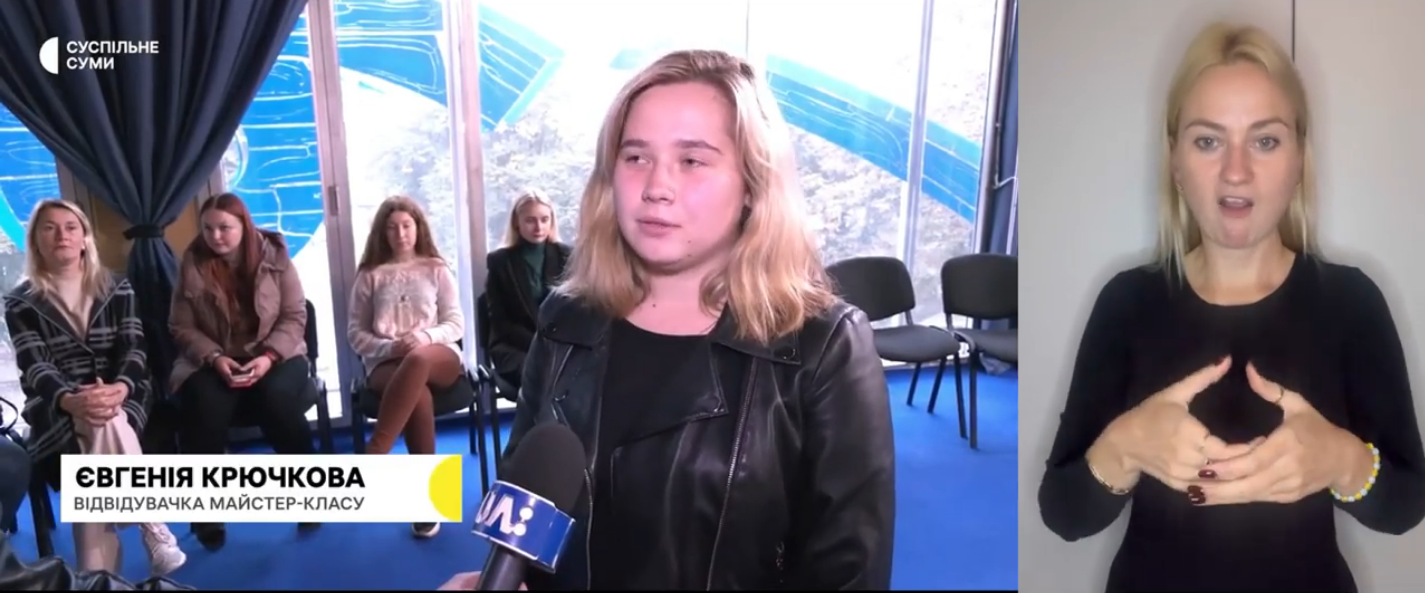Відтак, до Міжнародного дня жестової мови у Сумах 23 вересня 2022 року, відбувся майстер-клас. Його учасницями стали здобувачі вищої освіти спеціальності 016 Спеціальна освіта (Олігофренопедагогіка) й професорсько-викладацький склад кафедри спеціальної та інклюзивної освіти СумДПУ. В ході майстер-класу, його ведуча – Ніна ОСТРОВСЬКА демонструвала основи спілкування з людьми, які не чують. Наприклад, алфавіт жестової мови, а також деякі слова та фрази.