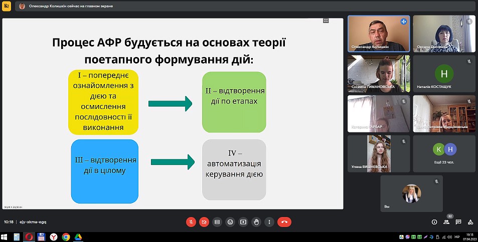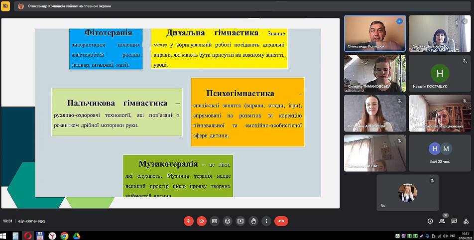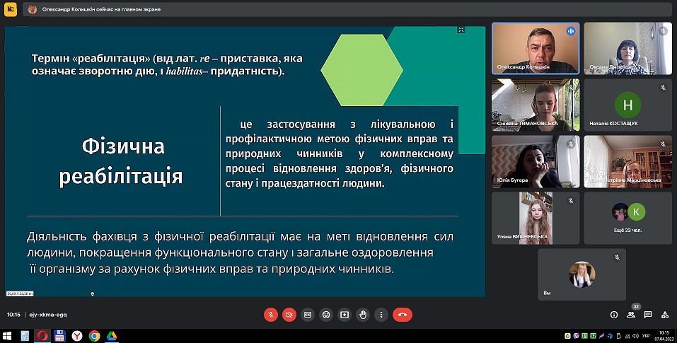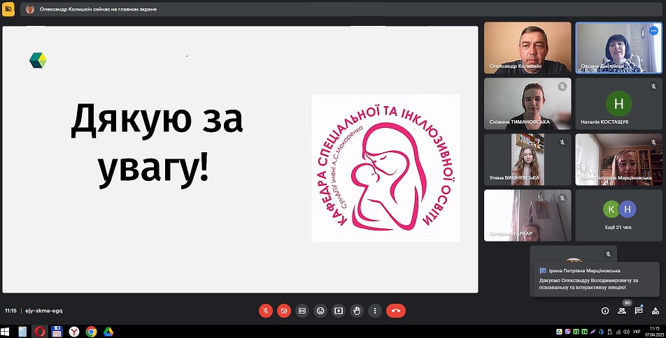 07 квітня 2023 року на платформі Google Meet відбулася гостьова лекція кандидата педагогічних наук, доцента кафедри спеціальної та інклюзивної освіти Сумського державного педагогічного університету імені А.С. Макаренка – Олександра КОЛИШКІНА