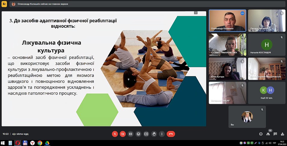 Чітка організація та ефективна демонстрація лекційного матеріалу, поєднання теоретичних аспектів адаптивної фізичної реабілітації з демонстрацією практичних прийомів їх застосування, вільне володіння аудиторією, вміння організувати взаємодію із слухачами сприяли активному сприйняттю і засвоєнню матеріалу, викликали питання у здобувачів вищої освіти, на які Олександр Володимирович надав вичерпні відповіді.