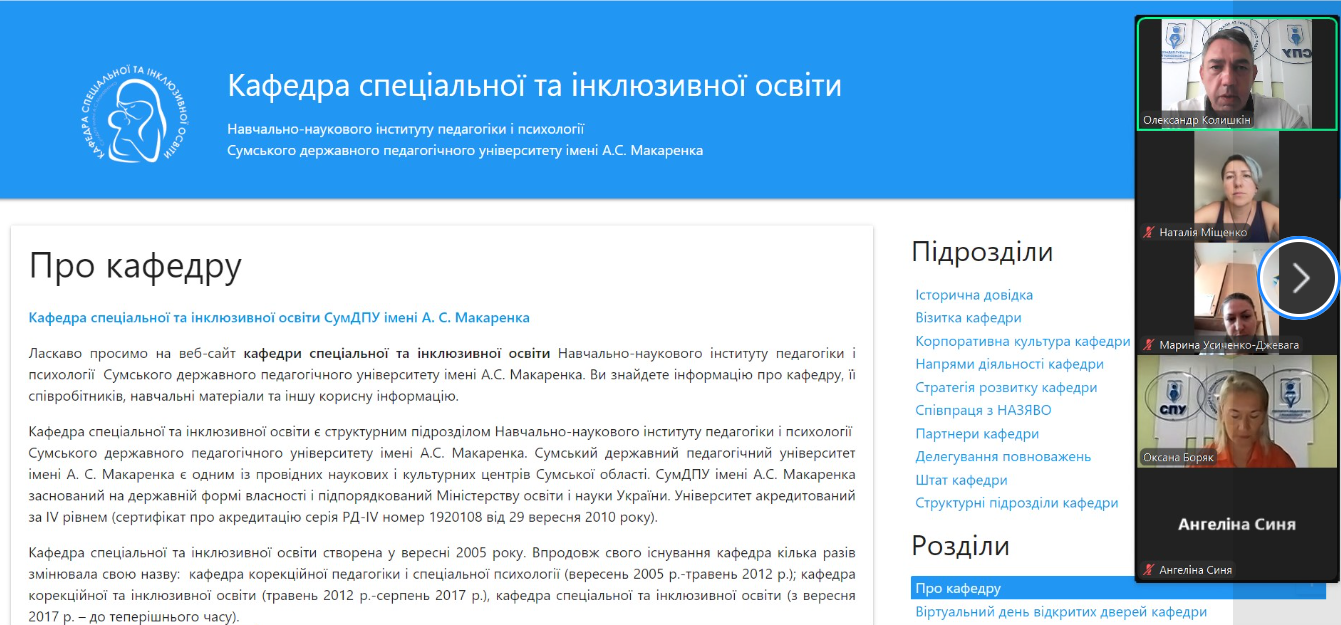 На початку зустрічі з привітальним словом виступила завідувач кафедри спеціальної та інклюзивної освіти Сумського державного педагогічного університету імені А. С. Макаренка, доктор педагогічних наук, професор Оксана БОРЯК.