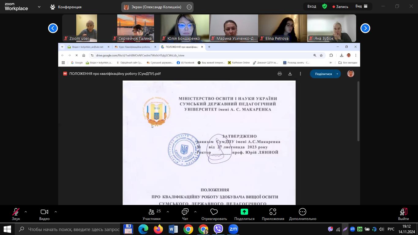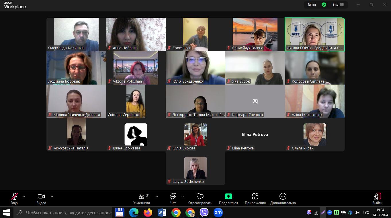 14 листопада 2024 року кафедрою спеціальної та інклюзивної освіти в режимі відеоконференції проведено навчально-методичний семінар «Сучасні вимоги до оформлення кваліфікаційних робіт (ОР «Магістр») за спеціальністю 016 Спеціальна освіта»,
