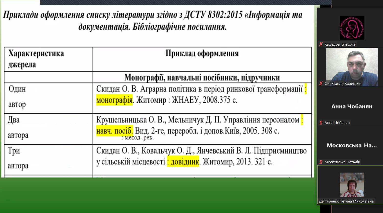 в межах якого здобувачі другого (магістерського) рівня вищої освіти спеціальності 016 Спеціальна освіта денної і заочної форм навчання ознайомилися з алгоритмом написання наукового дослідження. Спікери семінару – професор Оксана БОРЯК, доцент Олександр КОЛИШКІН, професор Тетяна ДЕГТЯРЕНКО, професор Юлія БОНДАРЕНКО, доцент Анна ЧОБАНЯН, доцент Юрій КОСЕНКО розповіли магістрантам про нормативно-законодавчі документи, які регламентують процедуру написання та захист кваліфікаційної роботи в СумДПУ імені А.С. Макаренка, ознайомили із супровідною документацією, етапами написання роботи, вимогами до апробації результатів наукового дослідження.
