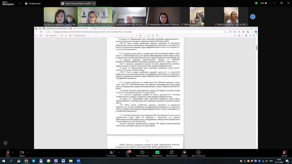 15 листопада 2024 р. відбулася зустріч працівників кафедри з академічною спільнотою представників закладів вищої освіти України щодо моніторингу освітньої програми першого (бакалаврського) рівня ВО спеціальності 016 Спеціальна освіта, спеціалізації 016.02 Корекційна психопедагогіка.
