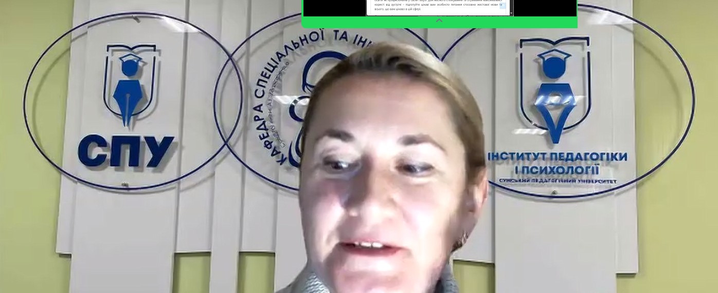 На початку зустрічі з привітальним словом виступила завідувач кафедри спеціальної та інклюзивної освіти Сумського державного педагогічного університету імені А. С. Макаренка, доктор педагогічних наук, професор Оксана БОРЯК.