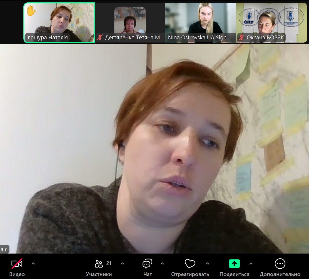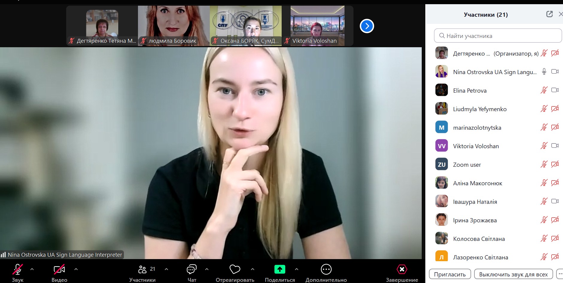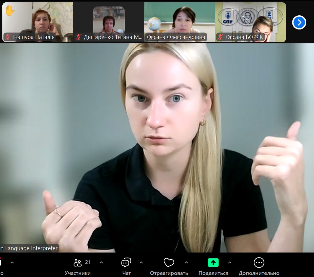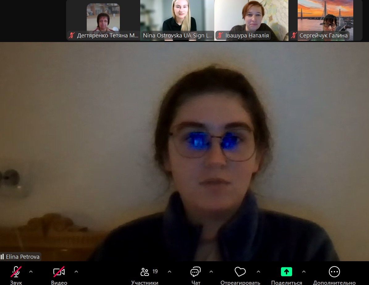 Лекція-дискусія проводилася з метою сприяння майбутньому становленню здобувачів освіти як професіоналів у своїй галузі. Для якісного спілкування та отримання максимальної користі від зустрічі, присутні на лекції підготували цікаві їм особисто питання стосовно жестової мови та всього, що було цікаво їм в цій сфері. Лекція відбулася в он-лайн форматі на платформі Zoom.