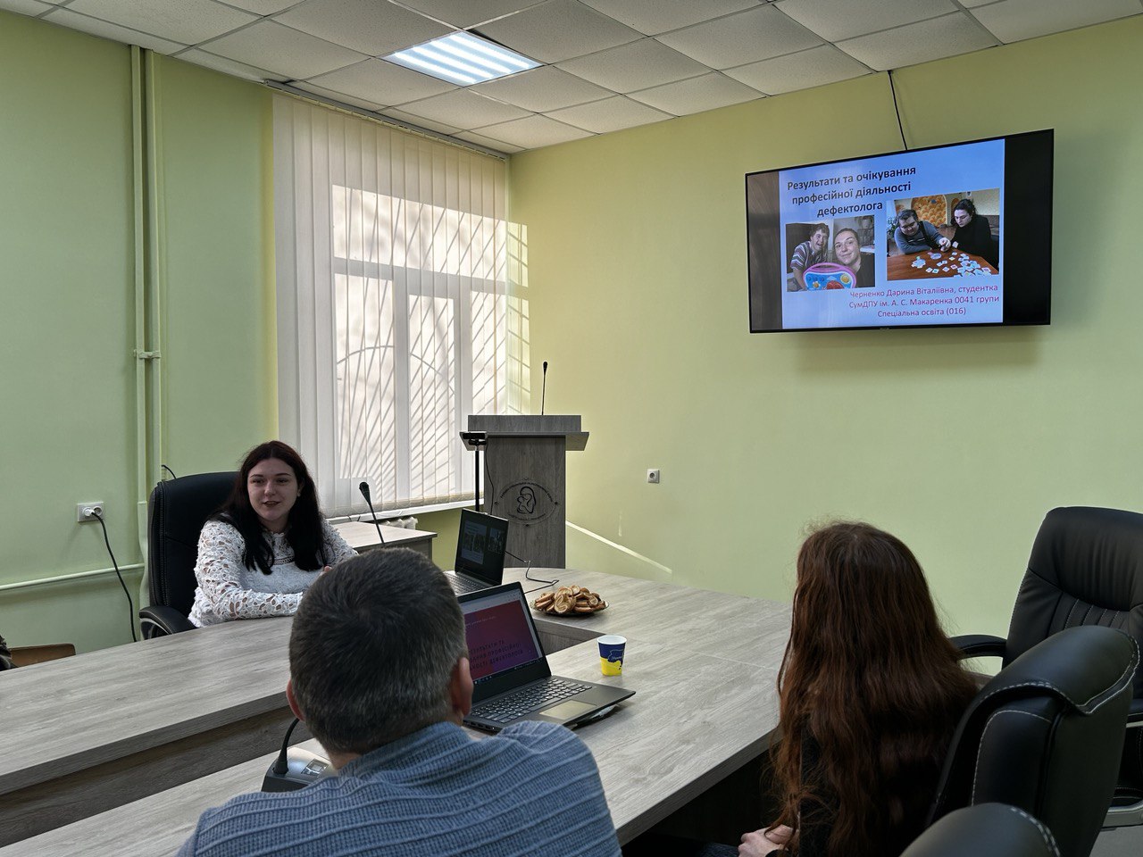 Модератор заходу доцент Анна ЧОБАНЯН, координувала виступи та дискусії. Основною темою зустрічі стала презентація-роздум «Результати та очікування професійної діяльності дефектолога». Учасники підготували доповіді, у яких представили свій досвід, реальні практичні приклади та міркування щодо викликів, які виникають у їхній роботі.