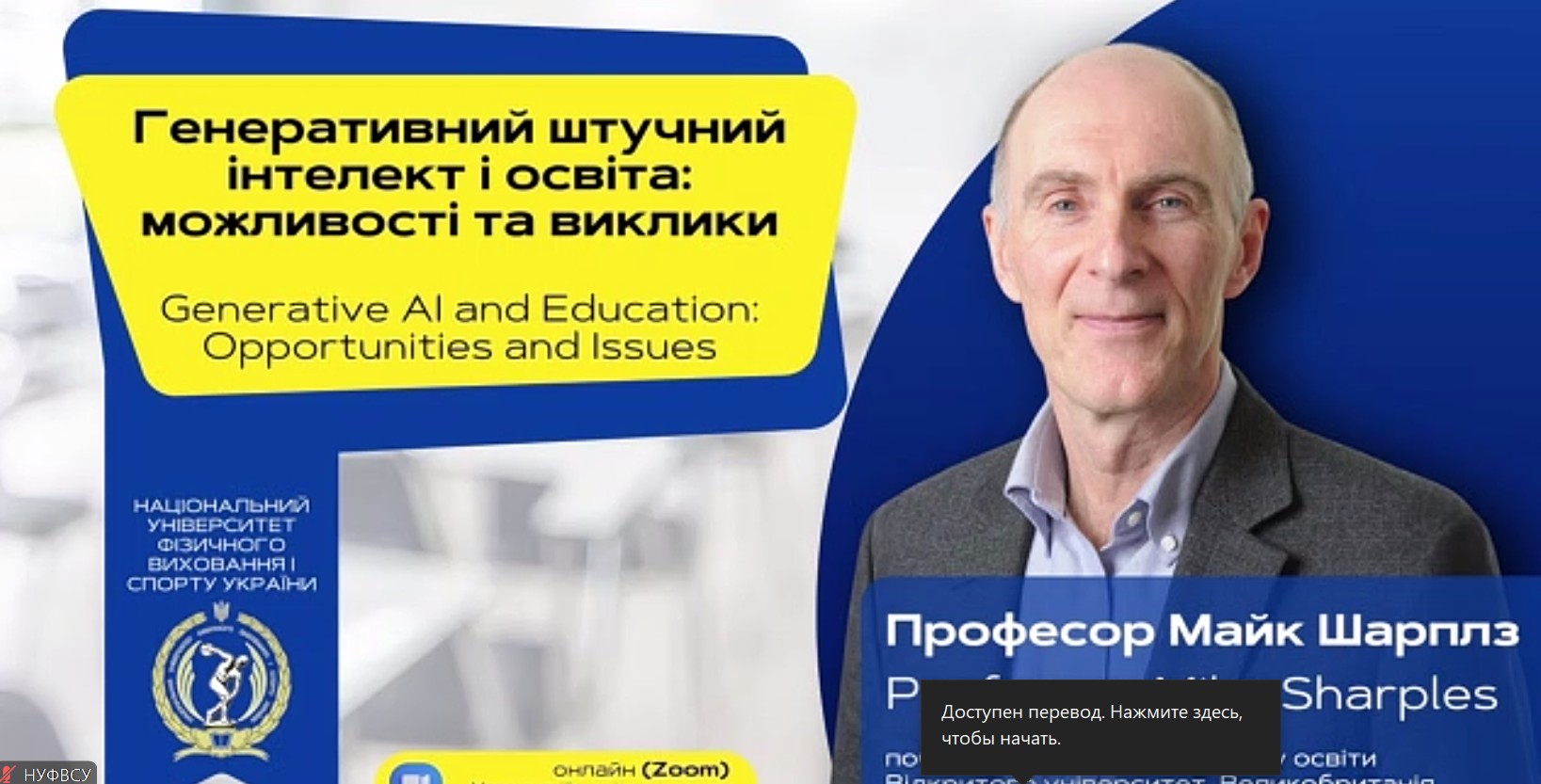 12 грудня 2024 року лекції на тему: «Генеративний штучний інтелект і освіта: можливості та виклики», спікер – Майк Шарплз, почесний професор Інституту освіти Відкритого університету.
