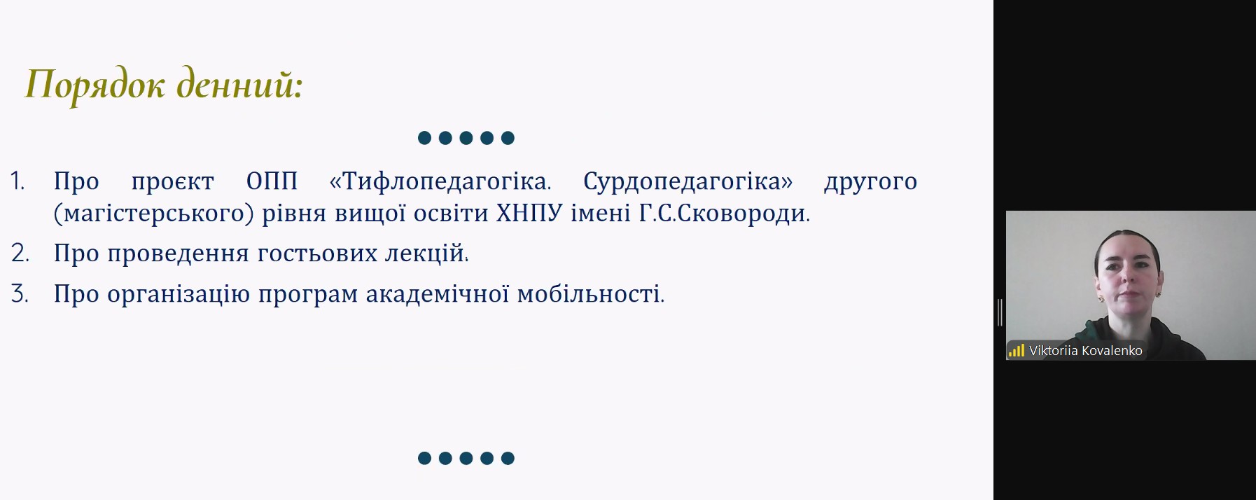 21 лютого 2025 року в онлайн-форматі відбулася зустріч академічної спільноти з членами проєктної групи ОП «Тифлопедагогіка. Сурдопедагогіка» Харківського національного педагогічного університету імені Г.С. Сковороди.