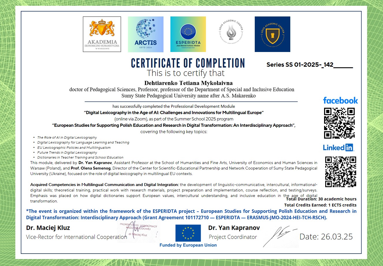 26 березня 2025 року відбулося засідання круглого столу «Digital Lexicography in the Age of AI// Цифрова лексикографія в епоху ШІ» в межах літньої школи ESPERIDTA.