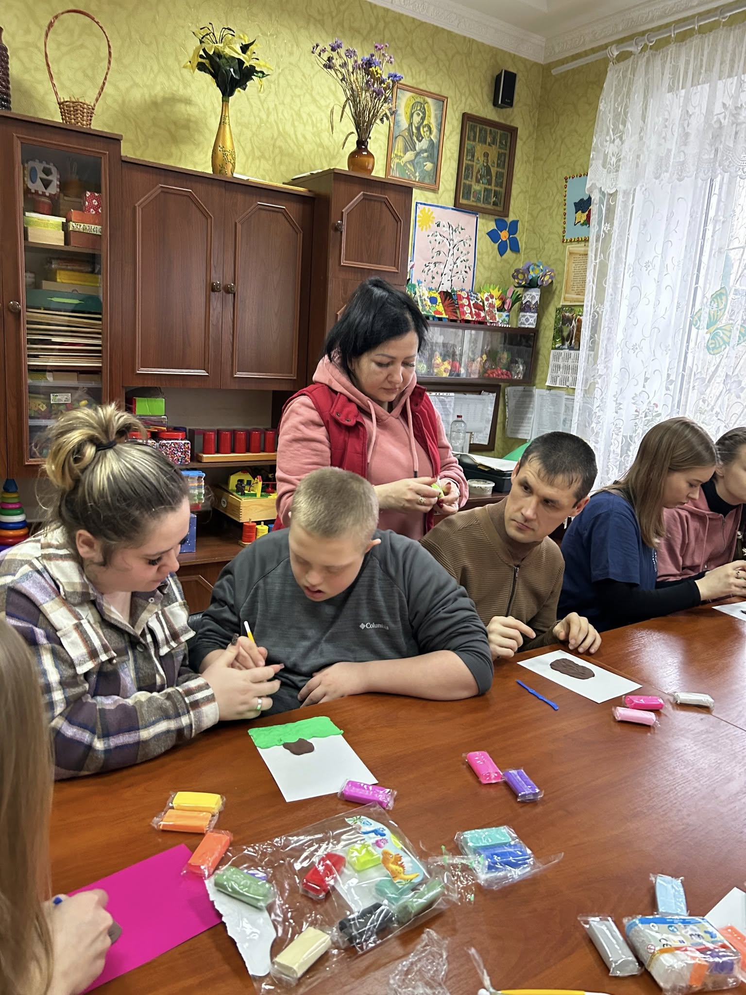 У творчій частині здобувачі першого (бакалаврського) рівня ВО спеціальності 016 Спеціальна освіта та вихованці Центру разом створювали аплікації з повітряного пластиліну – м’якого, легкого й надзвичайно приємного в роботі. Вихованці Центру проявили творчість та індивідуальність.