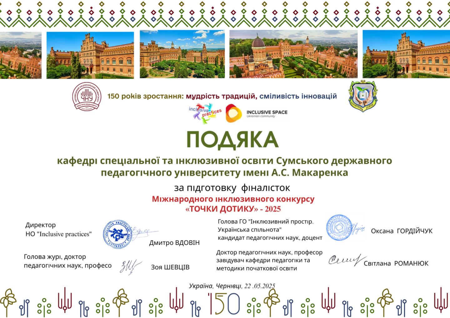 Міжнародний інклюзивний конкурс «Точки дотику» відбувався на базі кафедри педагогіки та методики початкової освіти Чернівецького національного університету імені Юрія Федьковича.