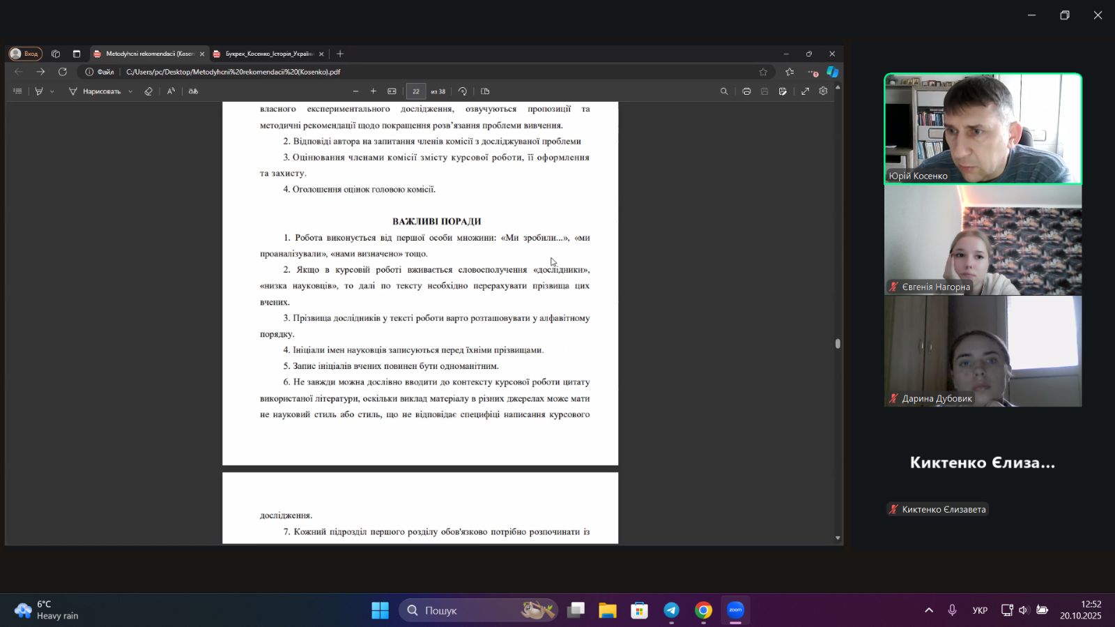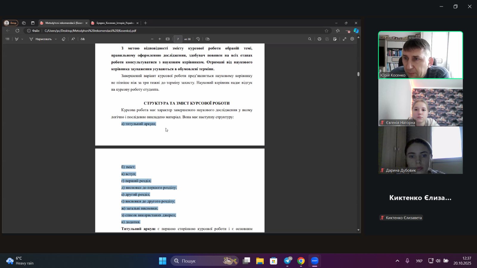 Учасники засідання були ознайомлені з вимогами та методичними рекомендаціями щодо написання курсових робіт здобувачами вищої освіти. Було акцентовано увагу на структурі наукової роботи, особливостях оформлення, дотриманні академічної доброчесності та правильному використанні джерел.