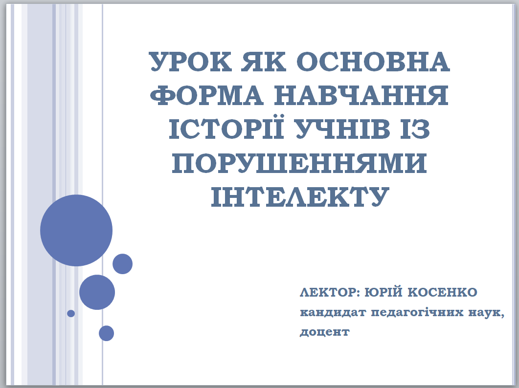 Під час заняття було розглянуто важливі питання, які стосуються структури уроку історії в спеціальному закладі загальної середньої освіти, типів уроків історії, вимоги до уроку історії та підготовка вчителя до заняття. Висвітлено питання використання методів активізації пізнавальної діяльності учнів, прийомів адаптації історичного матеріалу відповідно до індивідуальних освітніх потреб дітей з інтелектуальними порушеннями.