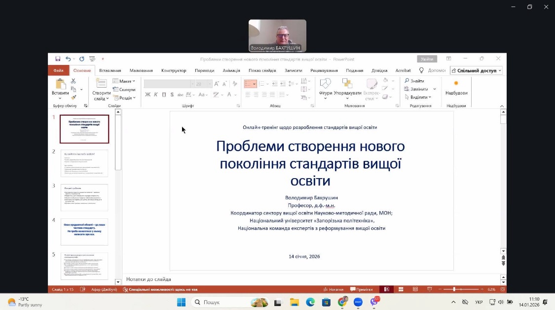 Тренінг з розроблення стандартів вищої освіти 14.01.2026