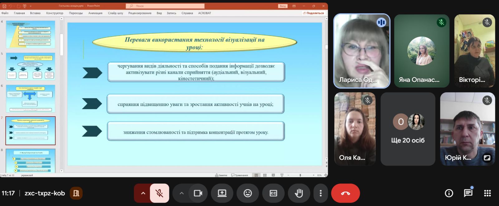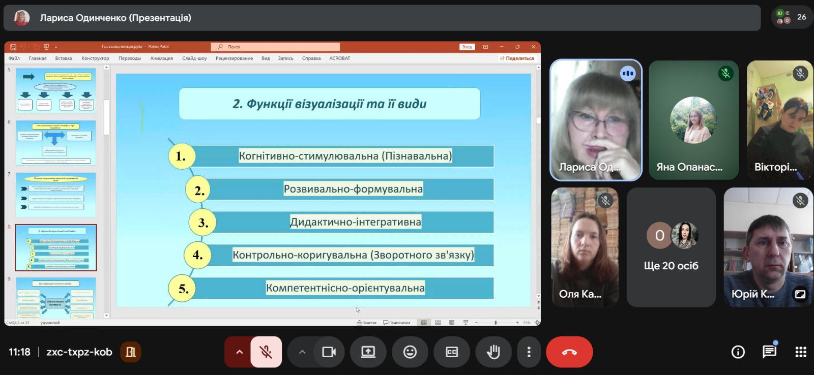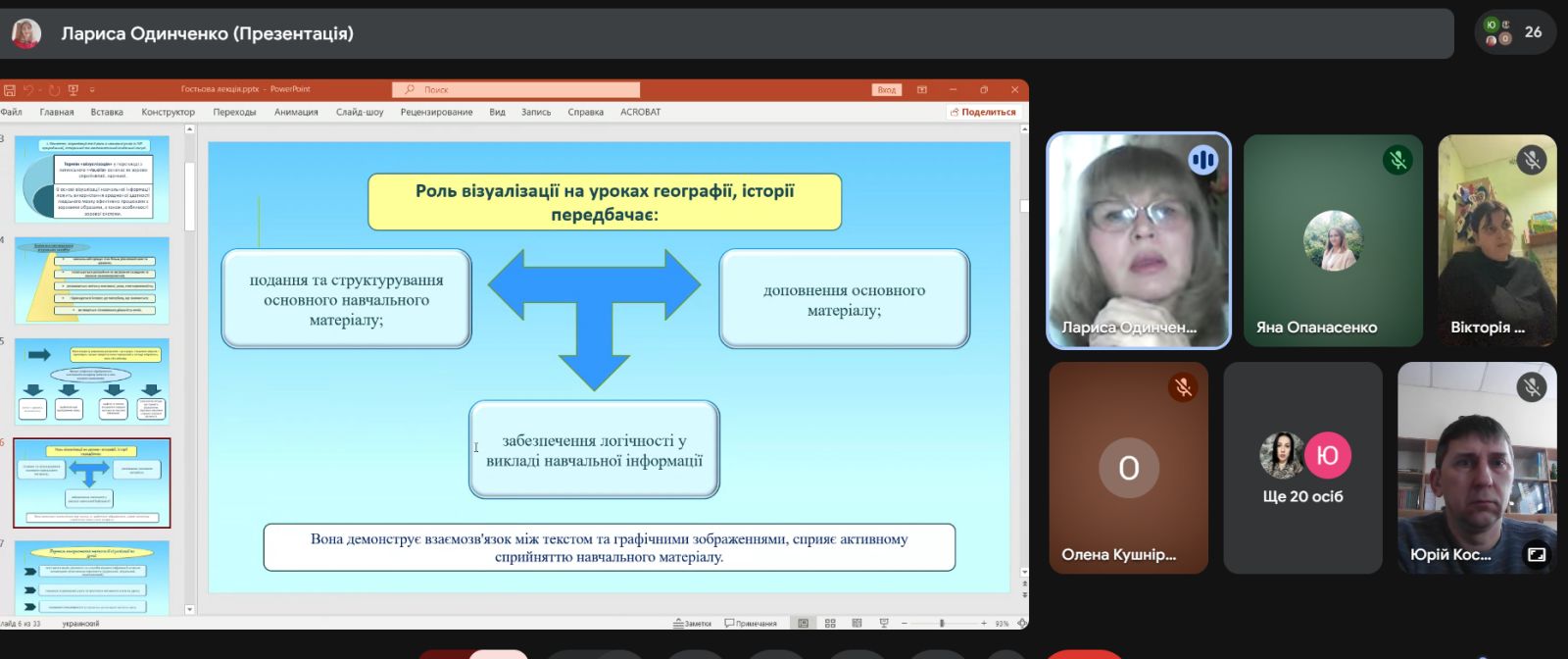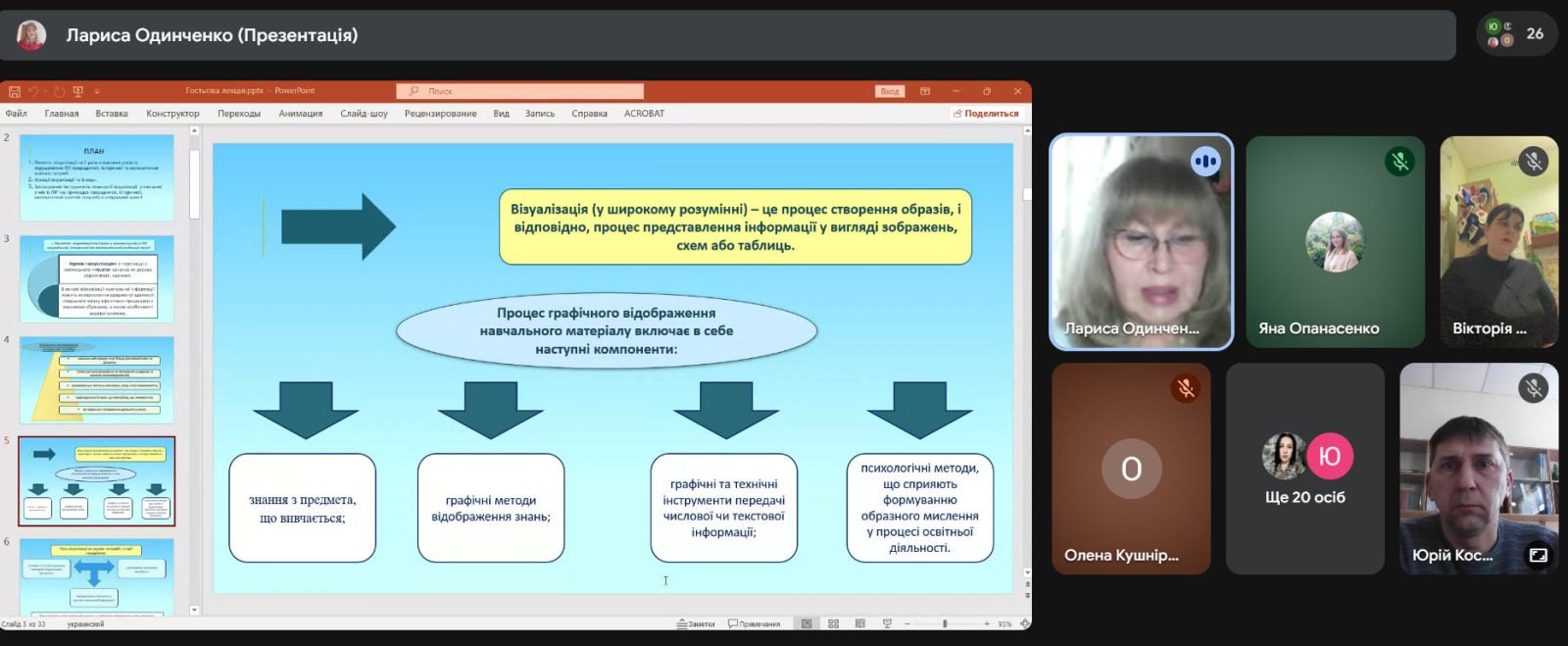 На лекції було висвітлено теоретичні засади та практичні аспекти використання технологій візуалізації в роботі з учнями старших класів спеціальних закладів загальної середньої освіти. Особливу увагу приділено можливостям застосування схем, алгоритмів, піктограм, інфографіки та цифрових ресурсів як засобів підвищення доступності навчального матеріалу. Наголошено, що застосування технологій візуалізації забезпечує краще засвоєння навчального матеріалу, сприяє формуванню самостійності здобувачів освіти, активізує пізнавальну діяльність та підвищує навчальну мотивацію.