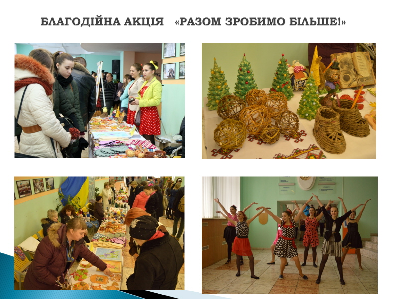 - збір речей, засобів гігієни для соціально незахищених верств населення та матеріалів для рукоділля дітей та молоді з особливими потребами;