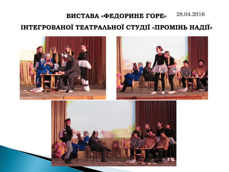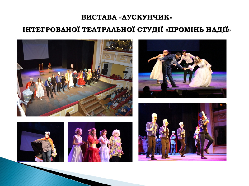 - інтегрована театральна студія «Промінь надії» (спільно з Відділення соціально-побутової адаптації «Злагода»СМТЦСО(НСП) «Берегиня»),