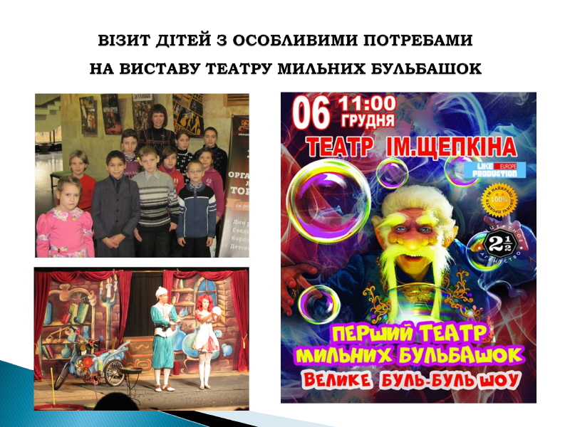 - організація та проведення інтерактивних вистав та ігрових програм до свят для дітей та молоді з порушеннями психофізичного розвитку та соціально вразливих верств населення міста Суми та Сумської області;