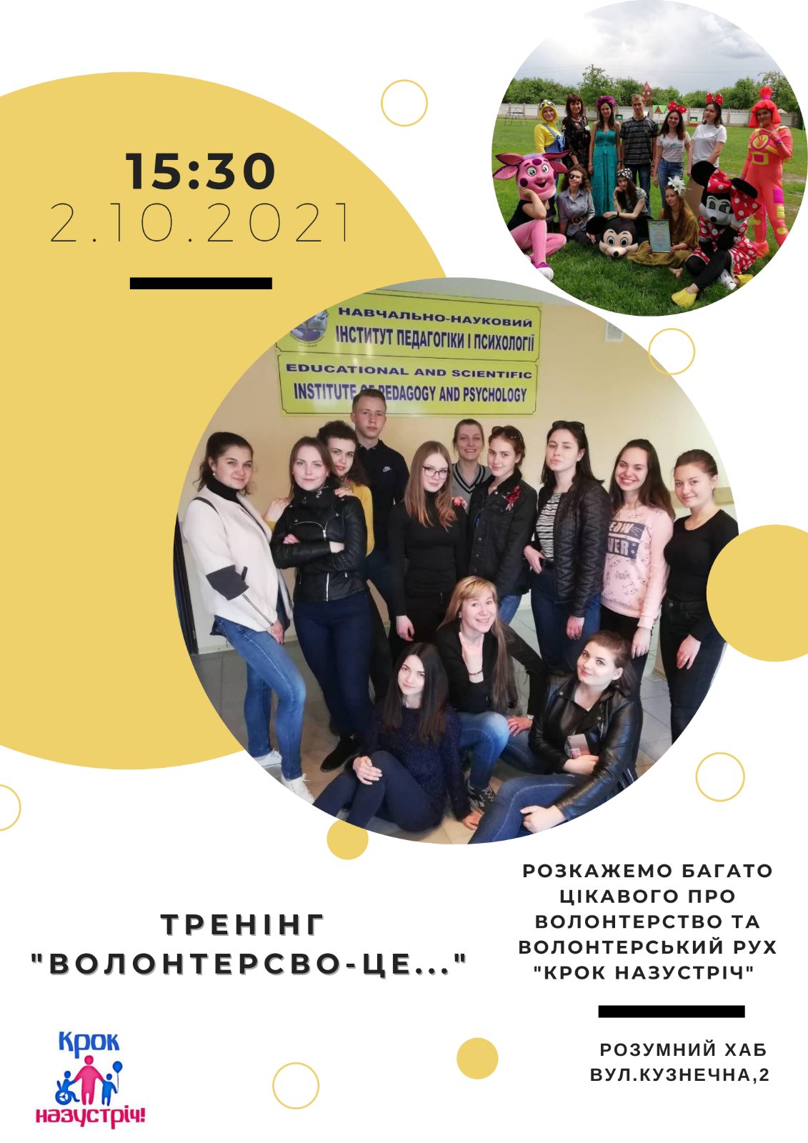 1-28 листопада 2021 року керівник Волонтерського руху «Крок назустріч» підвищувала свою волонтерську кваліфікацію шляхом участі у онлайн-курсі «Школа волонтерів 6.0» від Волонтерської мережі "Volunteer Community". Курс складається з 7-ми занять та 4 неформальних зустрічей за напрямками волонтерської діяльності, а також виконання практичних занять.