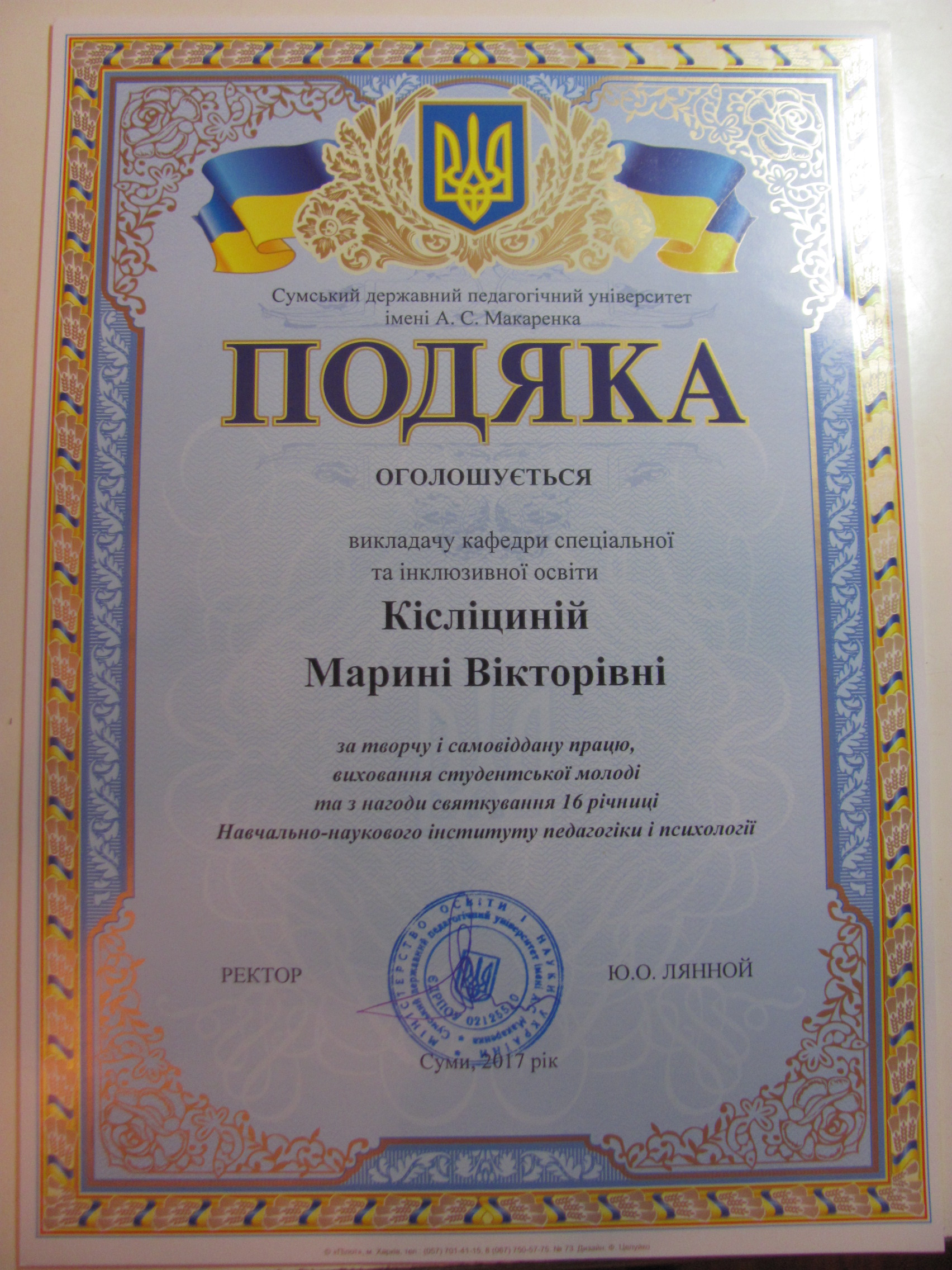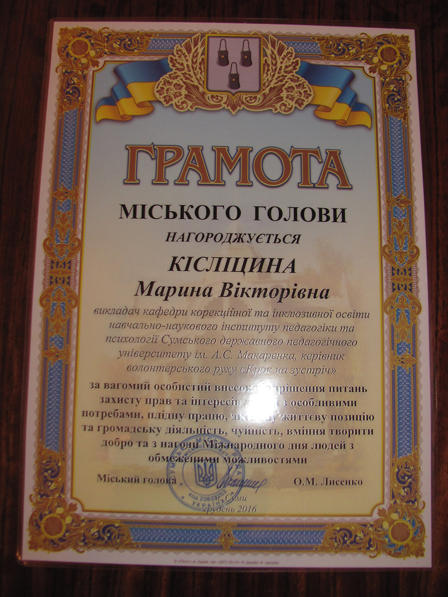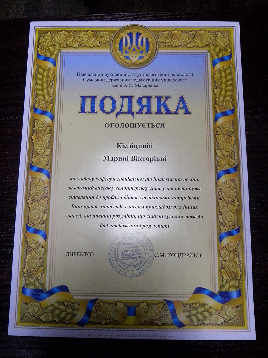 - отримав подяку директора КУ «Сумський міський територіальний центр соціального обслуговування (надання соціальних послуг) «Берегиня» за дієву допомогу, плідну співпрацю, самовідданість та співчуття, любов до ближнього і здатність змінити світ навколо себе на краще;