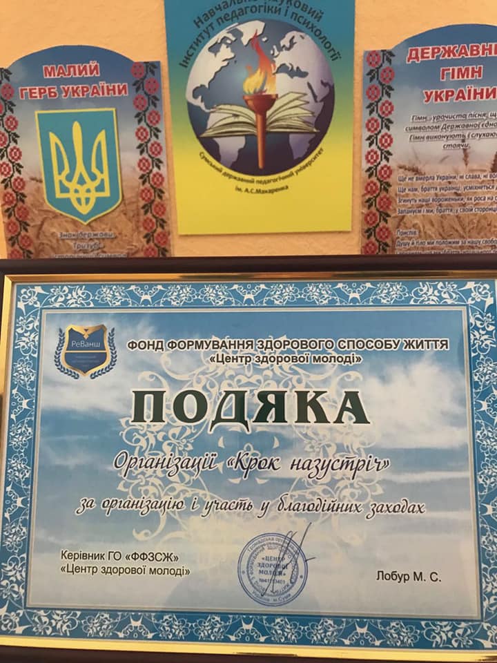 - отримав подяку «Фонду формування здорового способу життя «Центр здорової молоді» за організацію і участь у благодійних заходах.