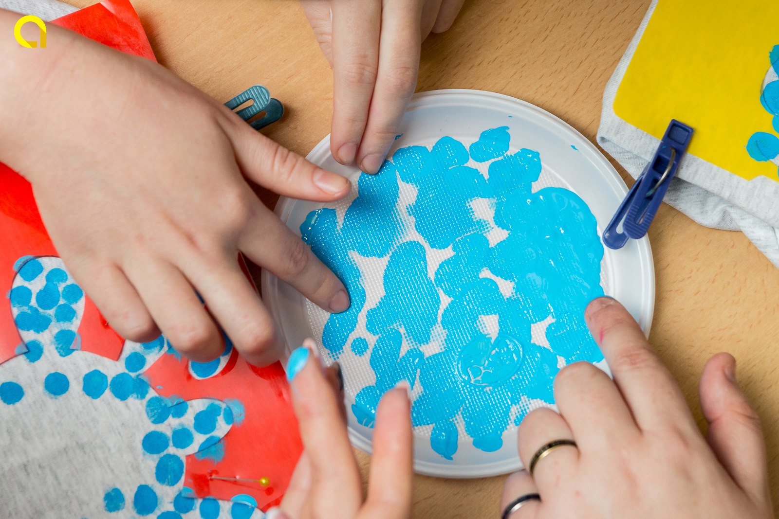 - Малювання пальчиками по тканині (виготовлення еко-сумок)