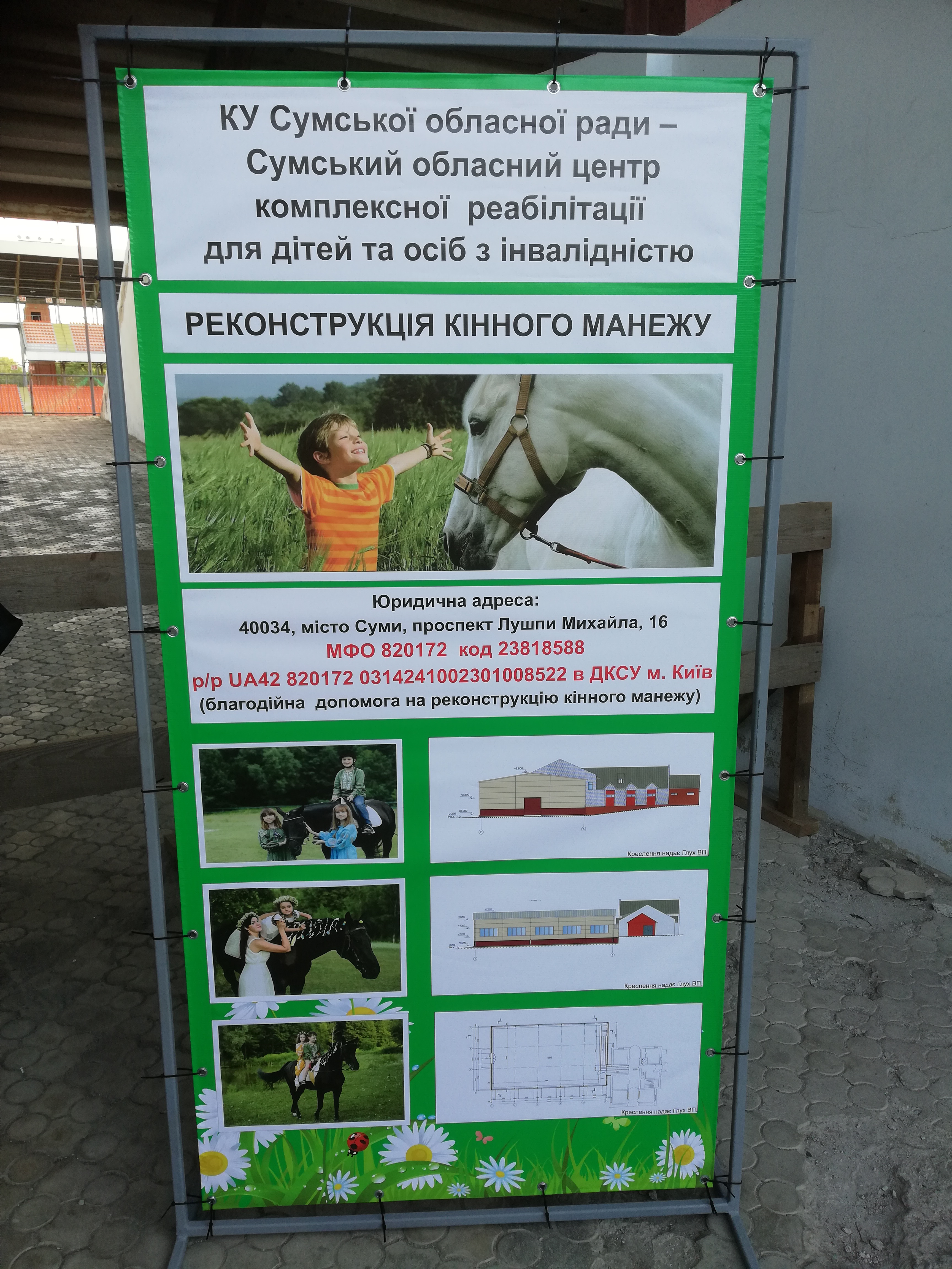 Мета заходу – збір коштів на будівництво кінного манежу Сумського обласного центру комплексної реабілітації для дітей та осіб з інвалідністю.